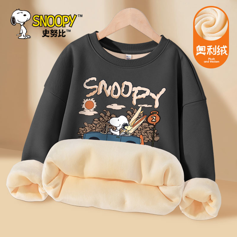 史努比男童加绒卫衣男大童保暖上衣加厚一体绒衣服儿童冬装男孩潮