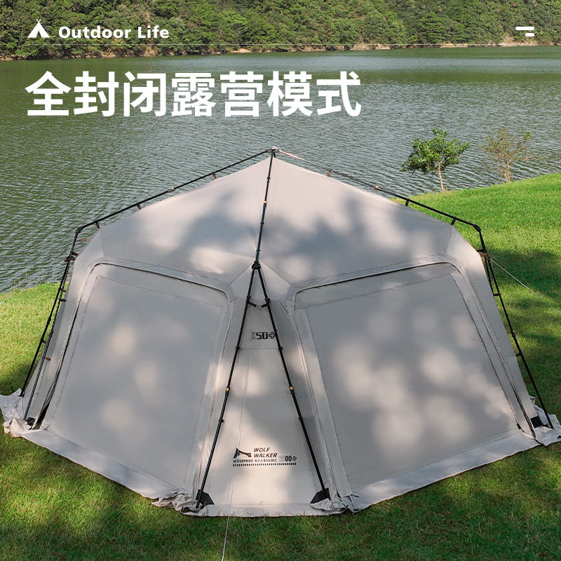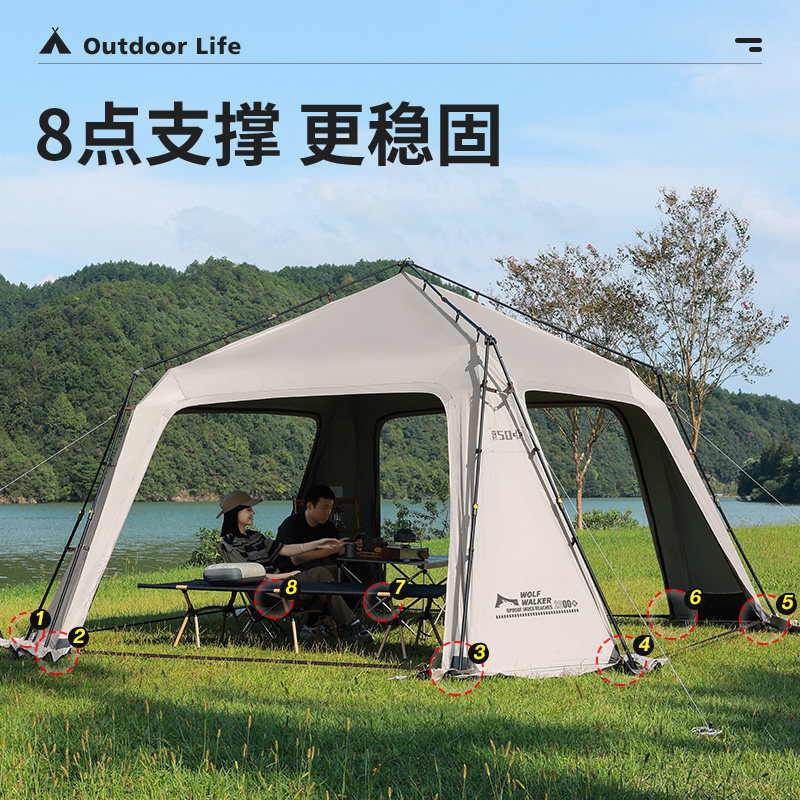 狼行者阔野大号自动穹顶烟囱帐篷天幕速开露营大天幕帐篷露营防水