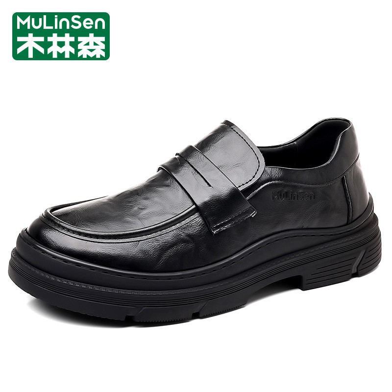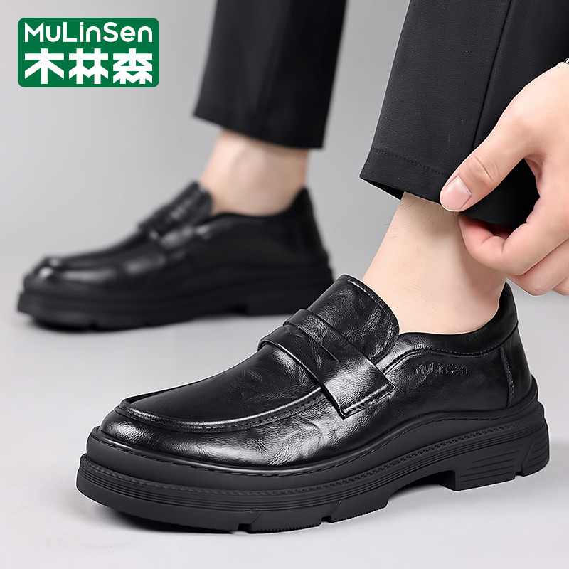 木林森皮鞋男冬季商务英伦正装休闲一脚蹬真皮乐福软底马丁豆豆鞋