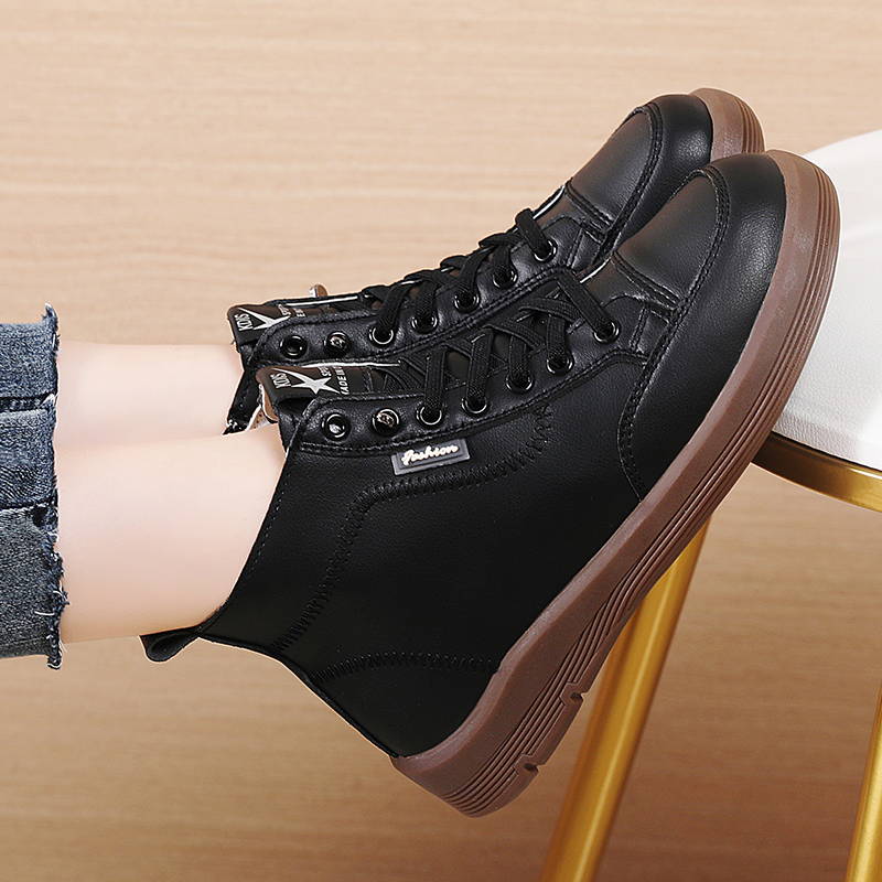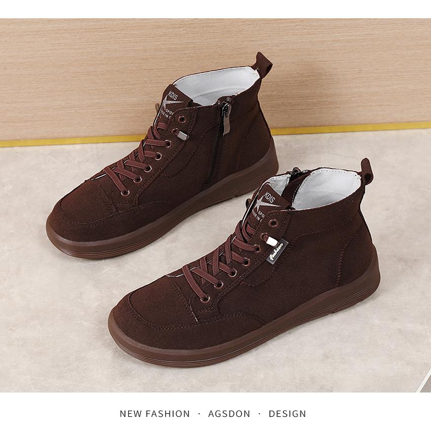 2025冬季新款加绒短靴防滑女高帮舒适软底脚圆头纯色保暖休闲女鞋