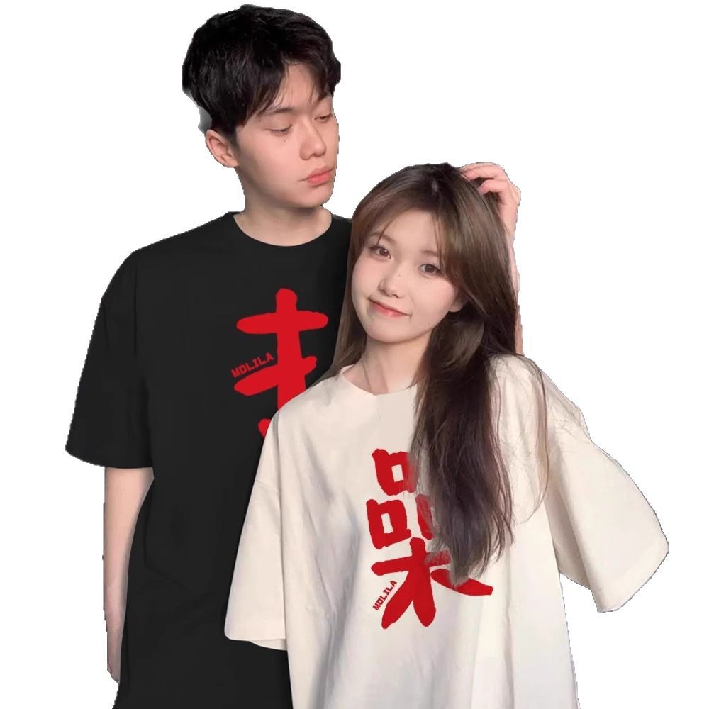 情侣装纯棉T恤夏季新款宽松显瘦小众设计感男女短袖上衣潮牌班服