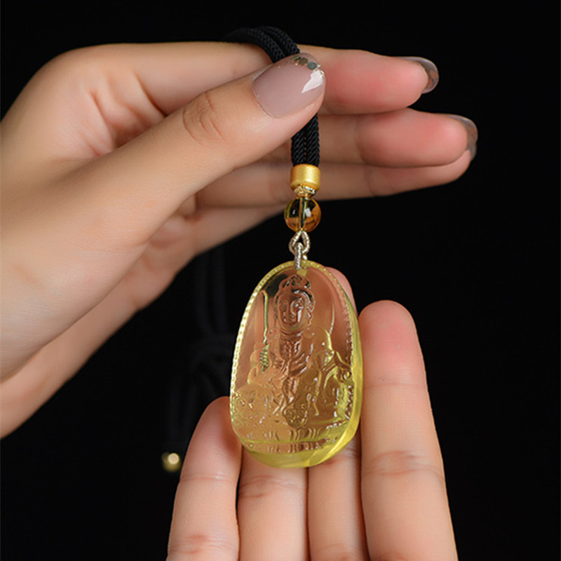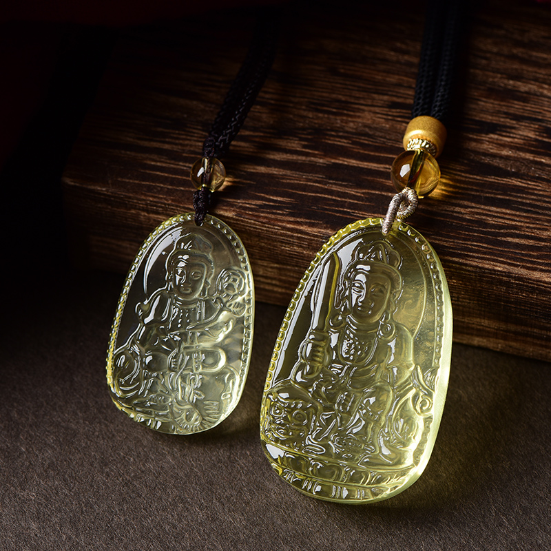 天然黄水晶本命佛吊坠女招财生肖守护神虚空藏文殊菩萨饰品项链男