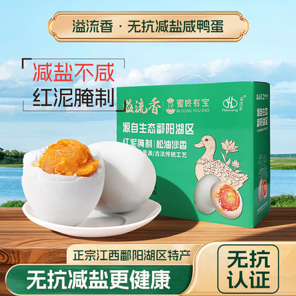 【无抗认证】溢流香减盐微咸熟咸鸭蛋礼盒 正宗江西鄱阳湖区特产