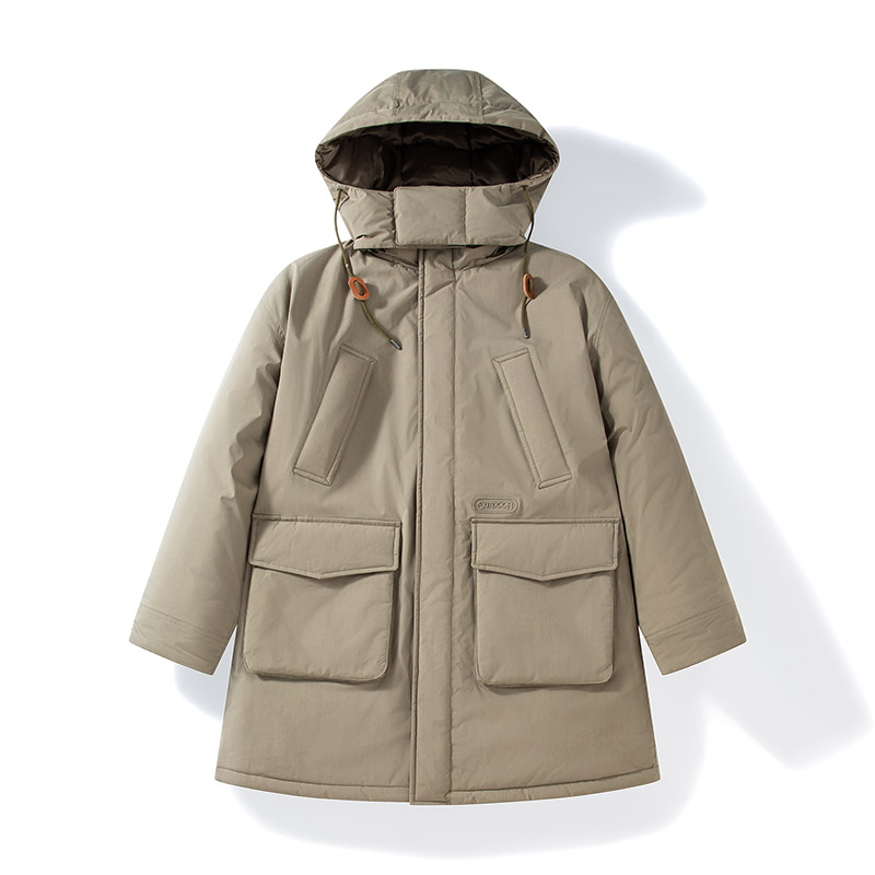 outdoor products秋冬男式连帽棉服外套保暖加厚中长款工装外套