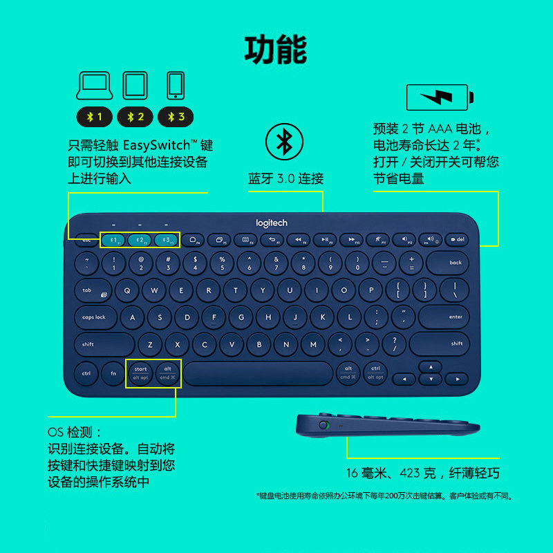 补贴罗技K380无线键盘蓝牙轻音高颜值适用ipad苹果平板轻薄键盘