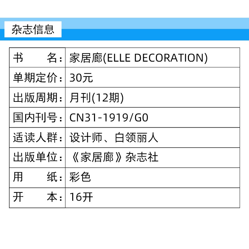 ELLE 家居廊杂志2024年1-12月2023年1-12月+2022年1-11月+2021年1-12月+2019年单本/打包任选 品位居家家居装修装饰设计期刊