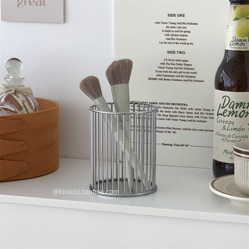 ins简约铁艺多功能化妆刷收纳筒桌面文具笔筒圆形梳子眉笔收纳桶