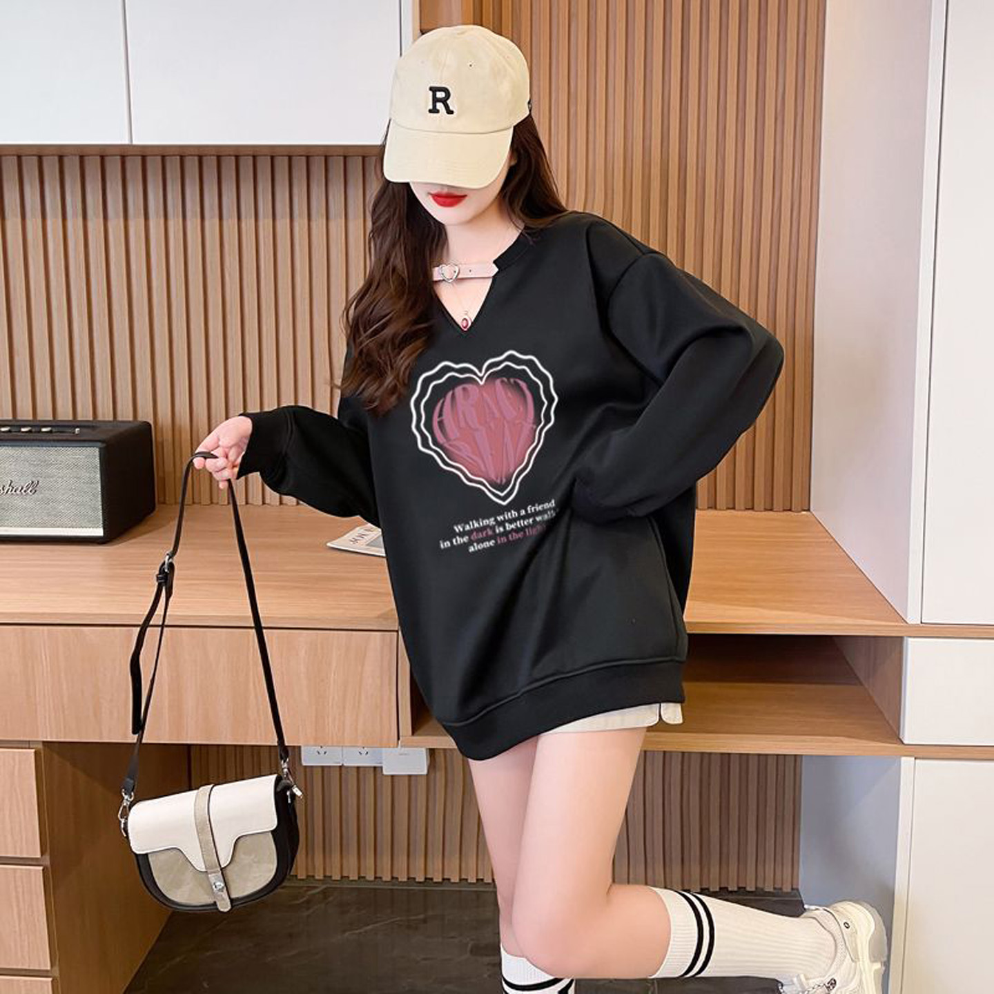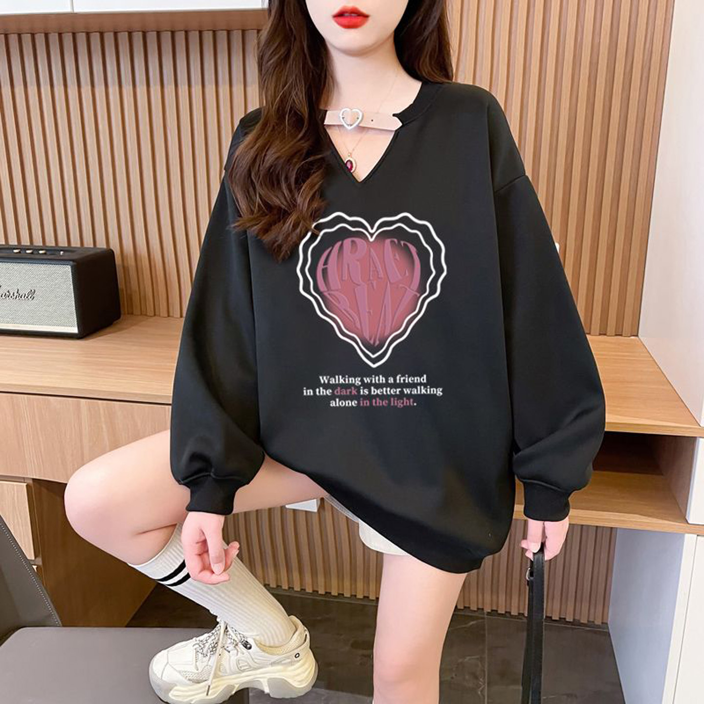 慵懒风爱心字母印花卫衣女春秋季韩版宽松中长款别致流行学生上衣