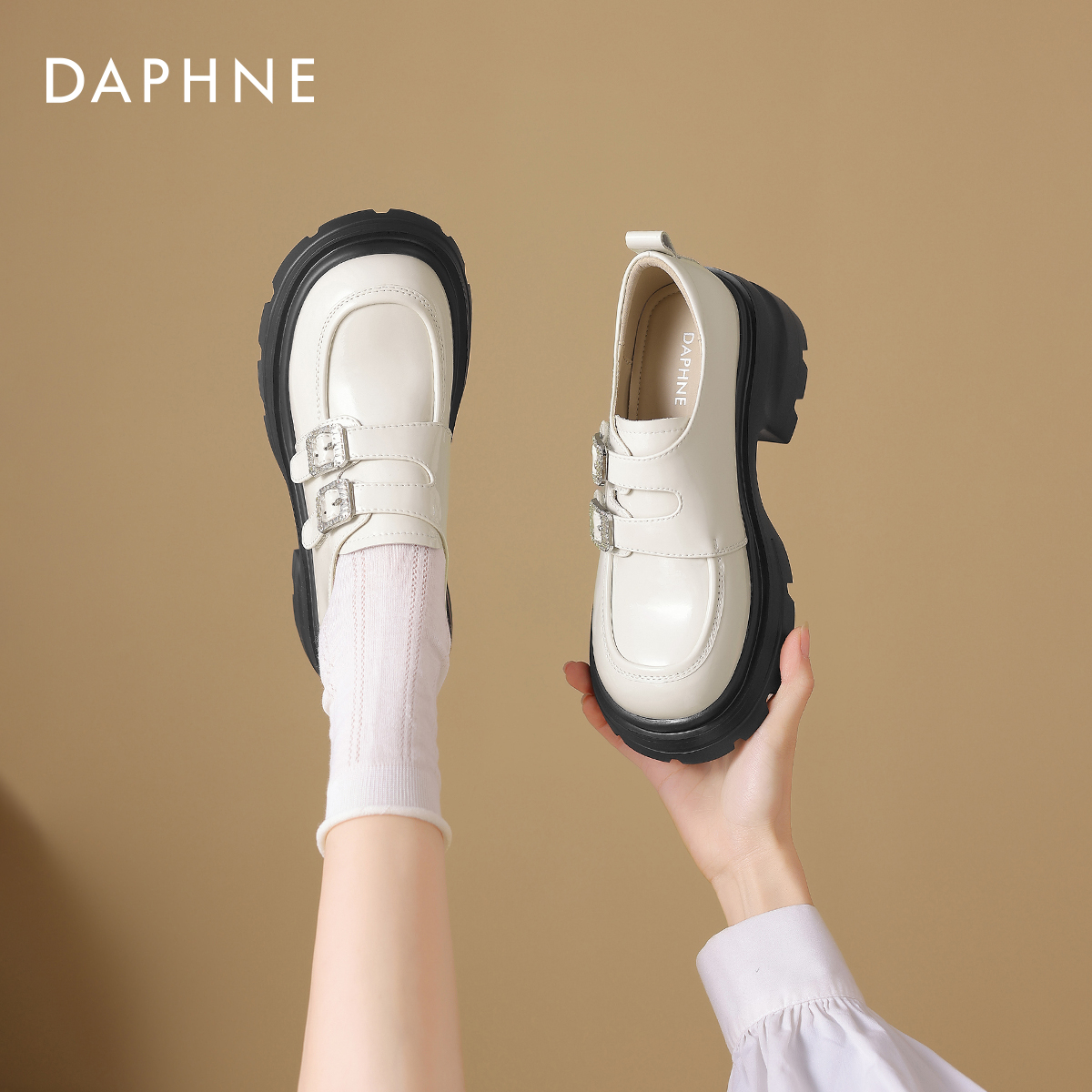 达芙妮厚底乐福鞋女2025新款秋季黑色英伦风小皮鞋小个子增高单鞋