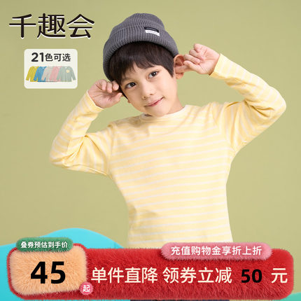 千趣会童装幼儿园宝宝25春秋长袖纯棉T恤条纹男女童上衣打底衫