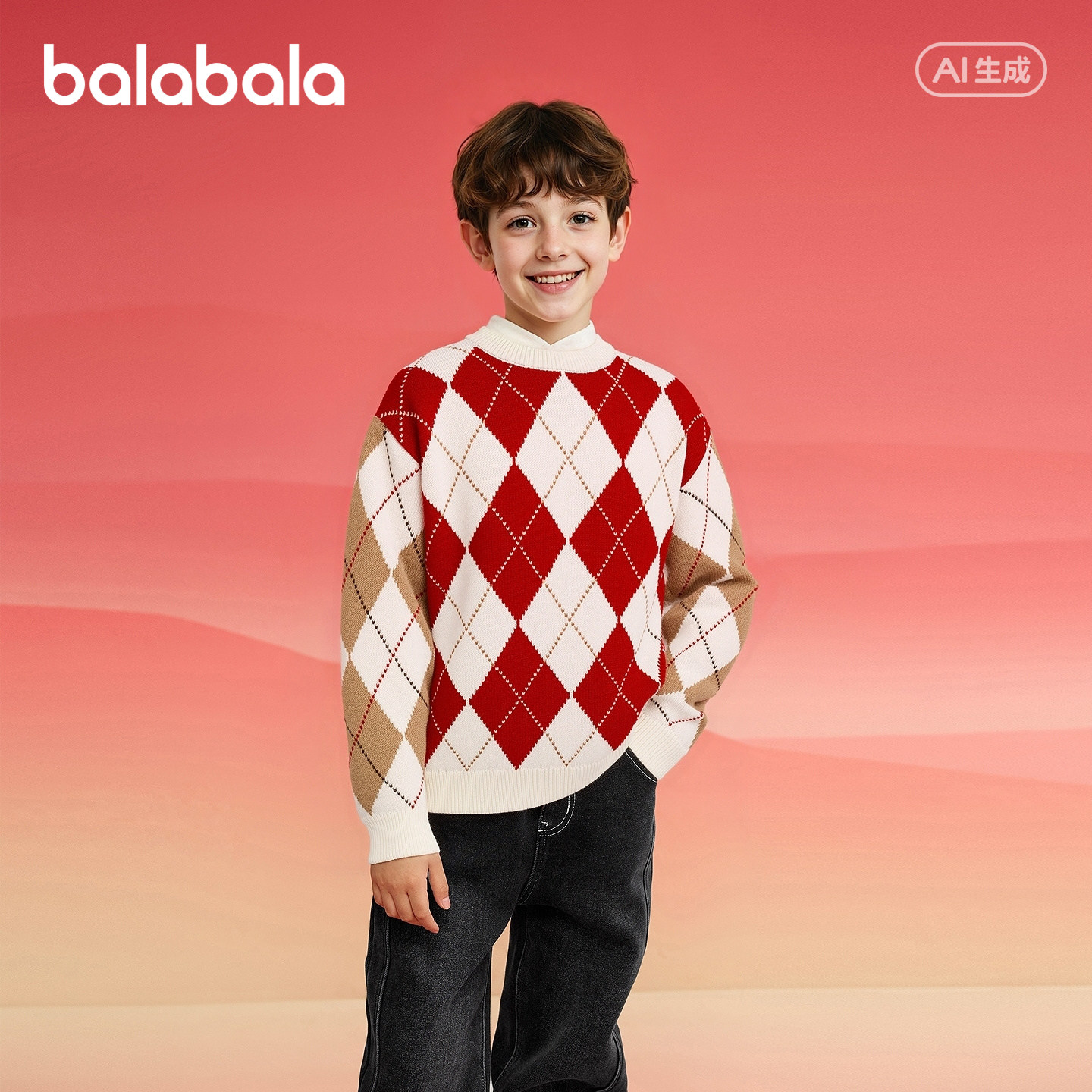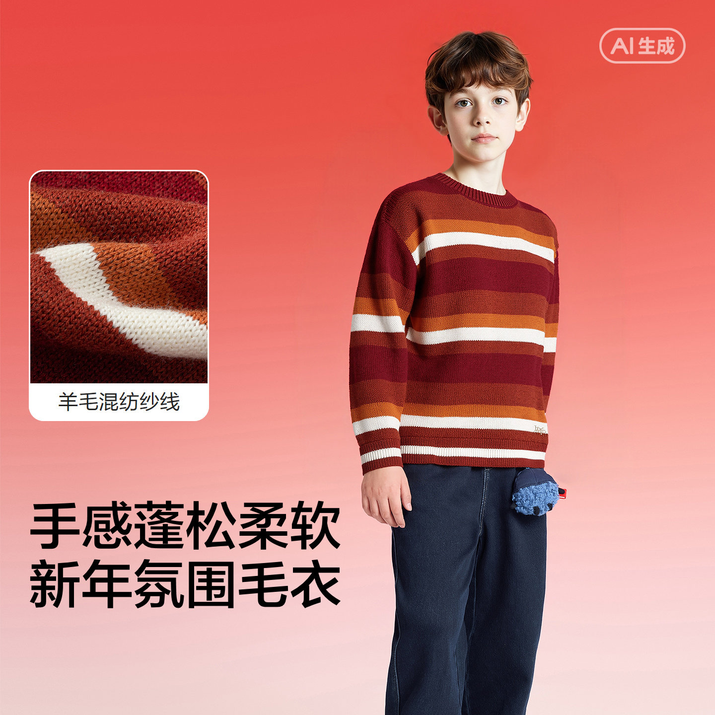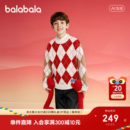 【商场同款】巴拉巴拉童装儿童毛衣男童2026新款春装红红色拜年服