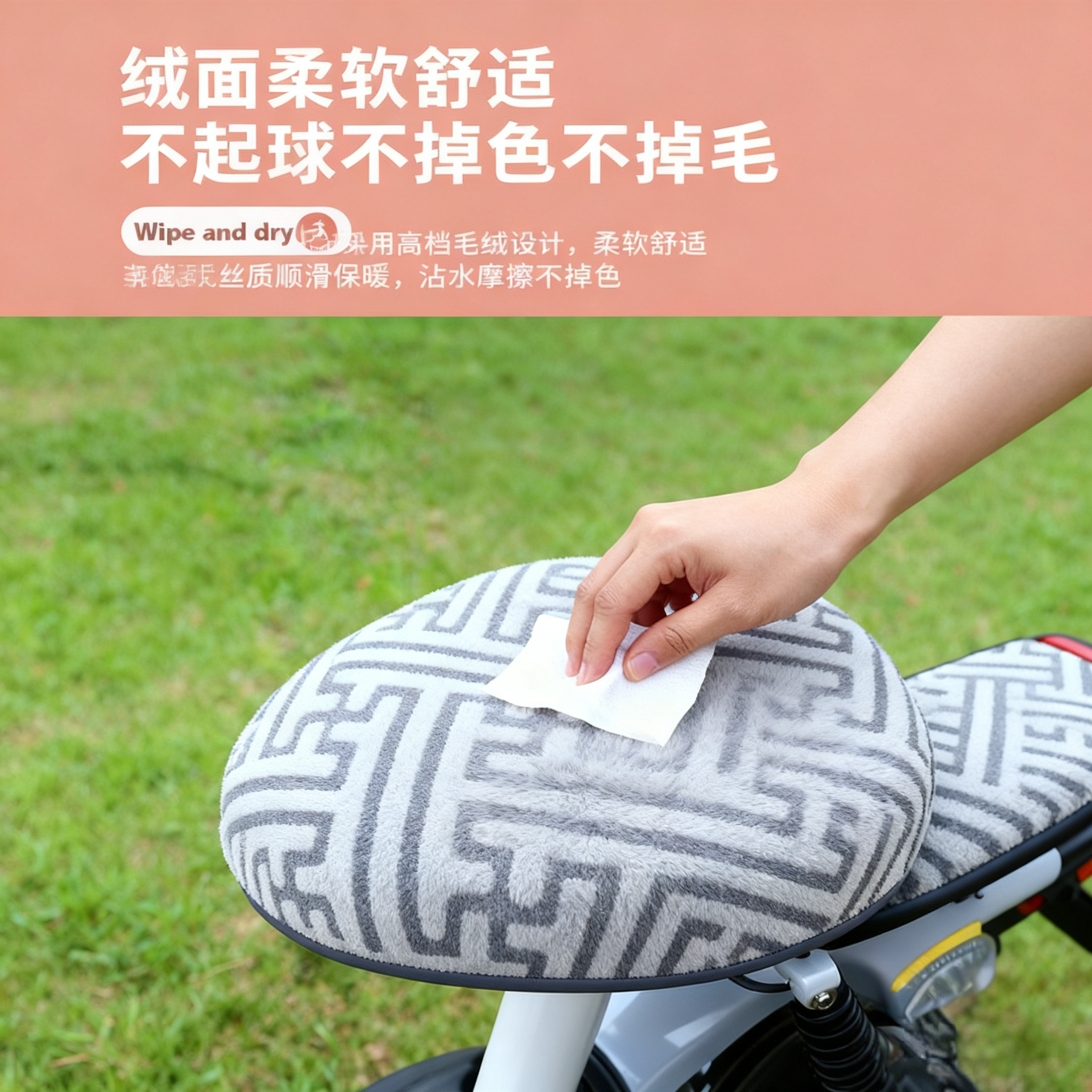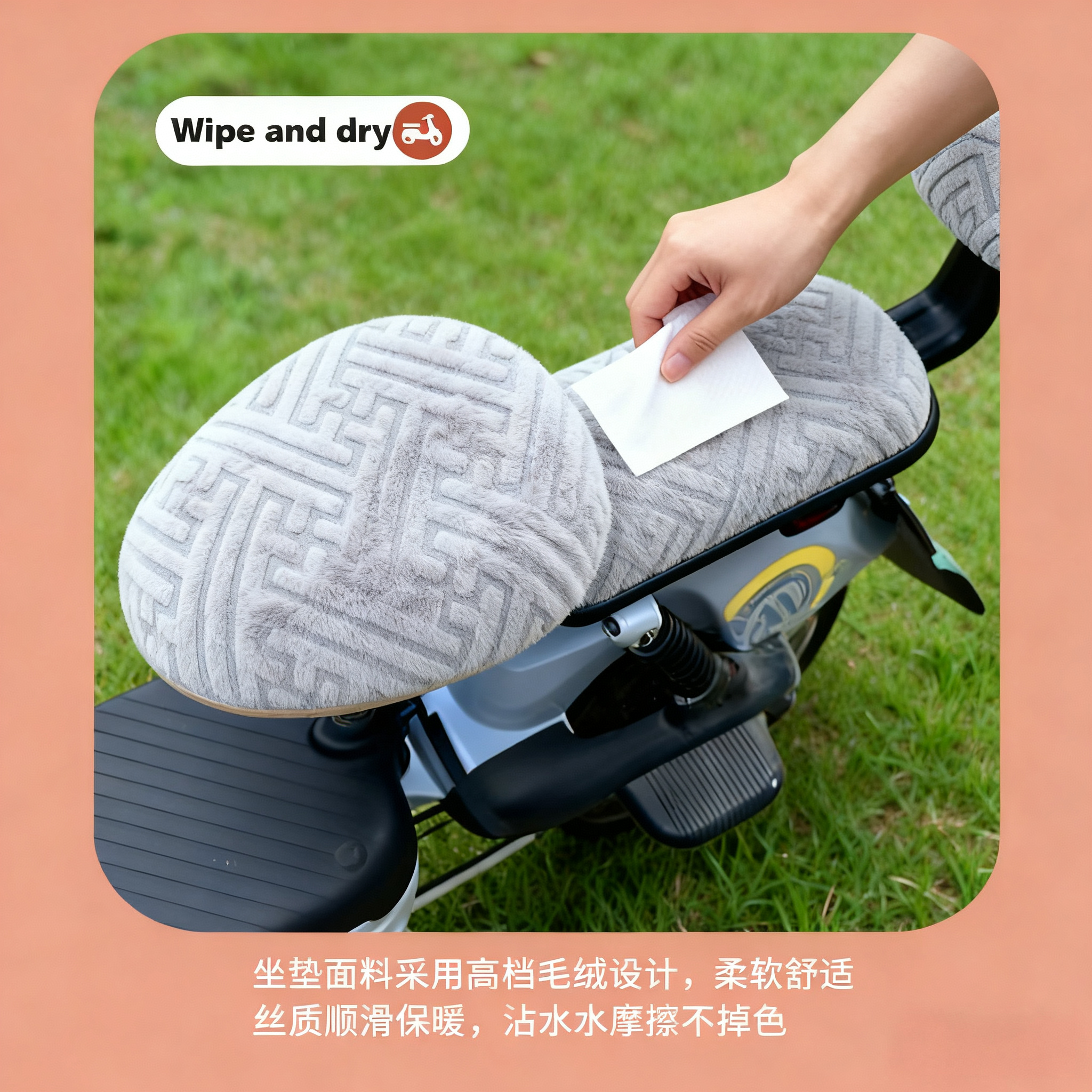 电动车坐垫提花防晒电车座套电瓶车四季防滑通用座垫后座绒布毛绒