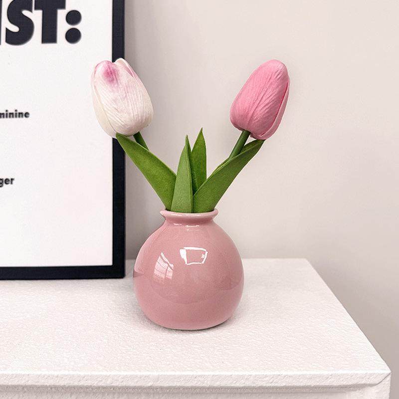 桌面ins风居家仿真陶瓷花瓶摆件小摆件插花小郁金香玄关装饰套装