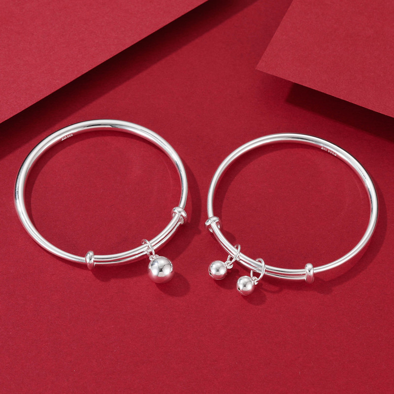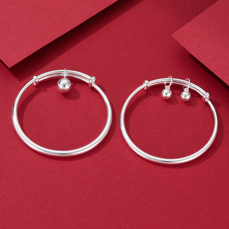999纯银手镯女光面铃铛银饰镯子