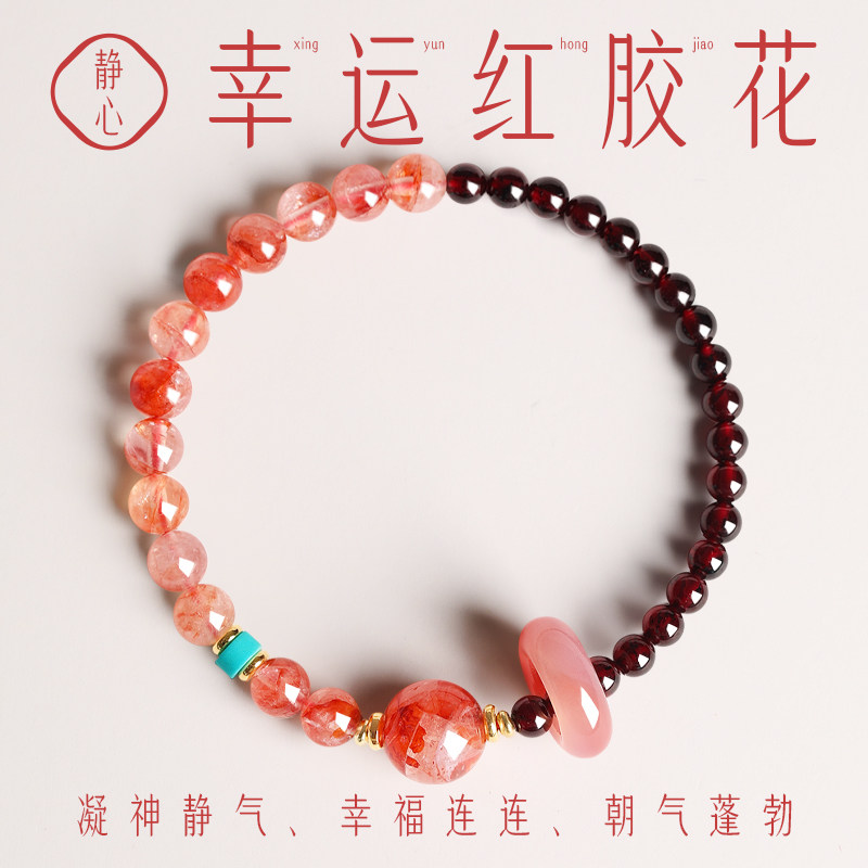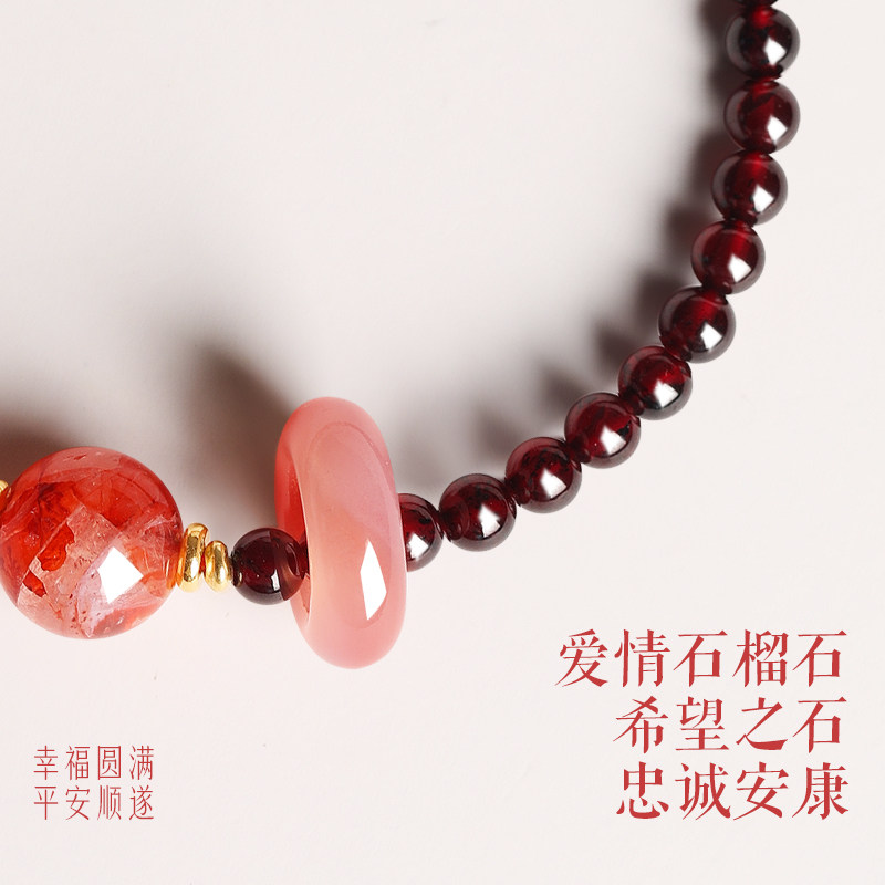 普陀山招桃花红胶花石榴石串珠手链女天然水晶玛瑙旺姻缘手串情侣