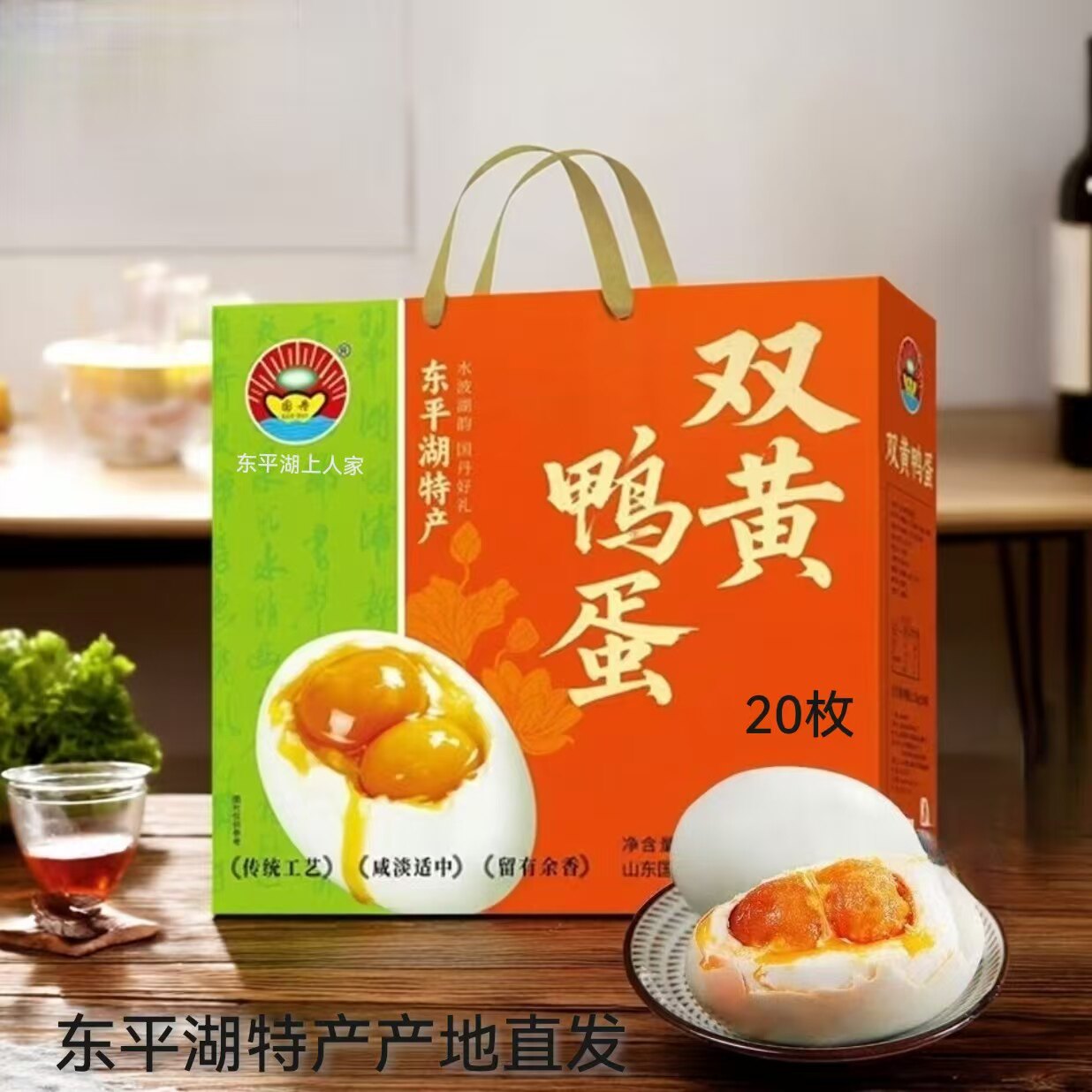 正宗东平湖特产礼盒双黄麻鸭蛋黄流油大咸蛋新鲜熟鸭蛋20枚真空装