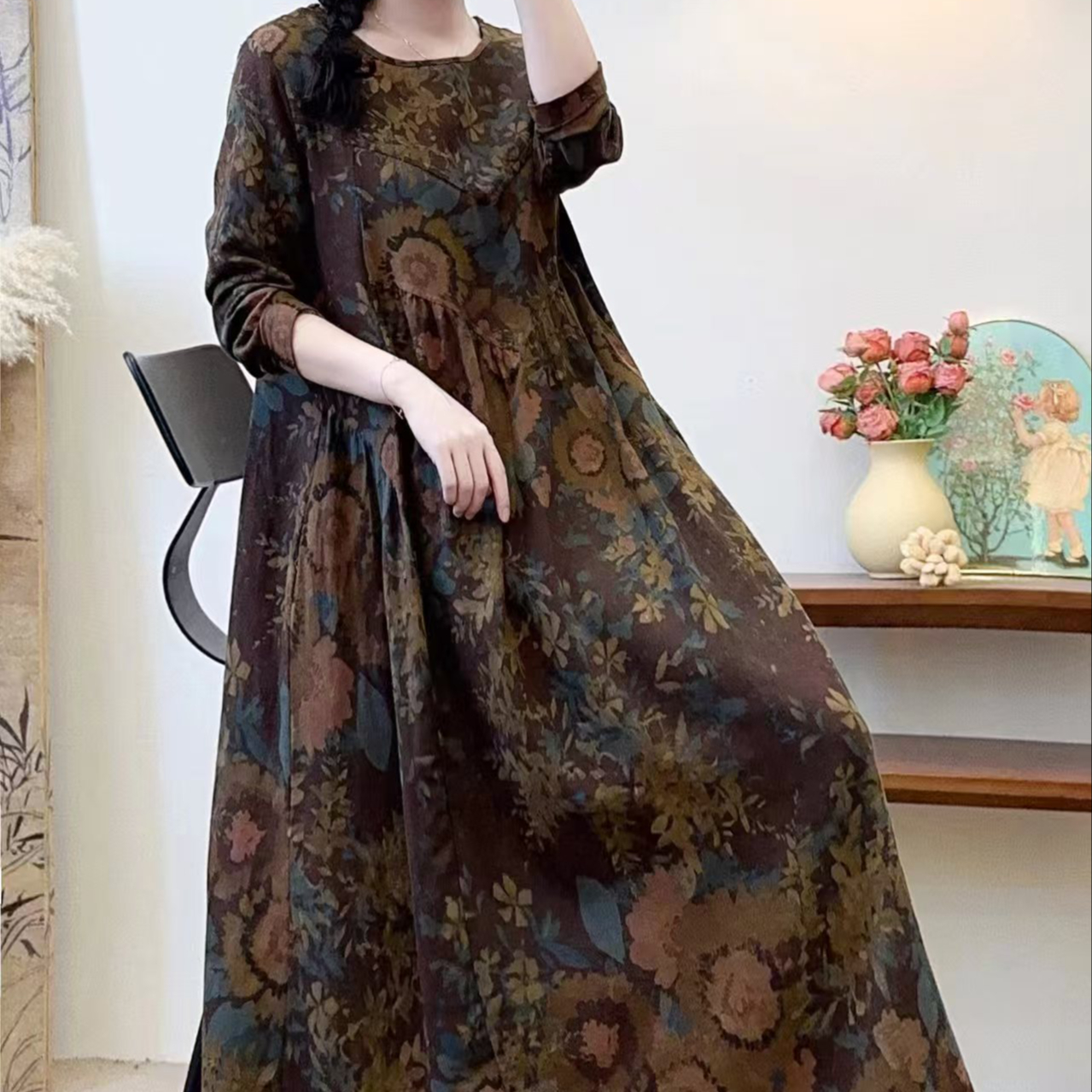 12153新款春秋民族风优雅减龄宽松大气碎花连衣裙QZ