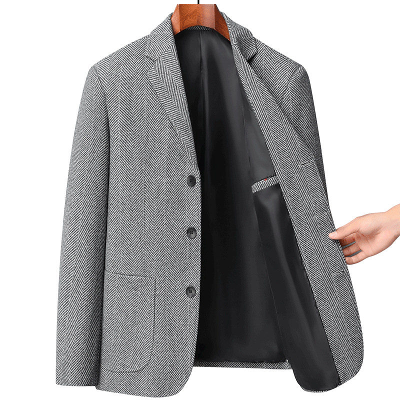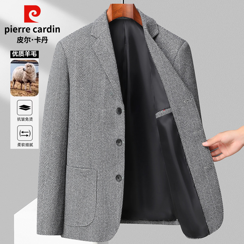 皮尔卡丹高级感西装外套男士春秋短款商务休闲羊毛呢子小西服上衣