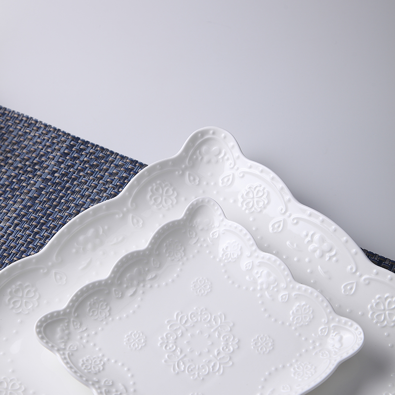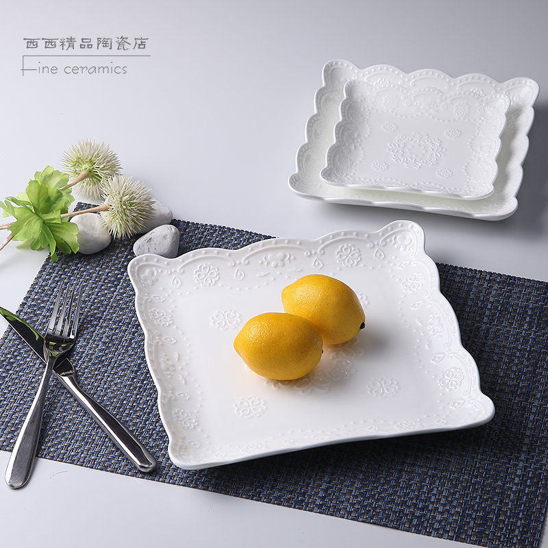 欧式浮雕西餐盘水果盘 蛋糕盘牛排盘四方盘 创意陶瓷平盘方形盘子