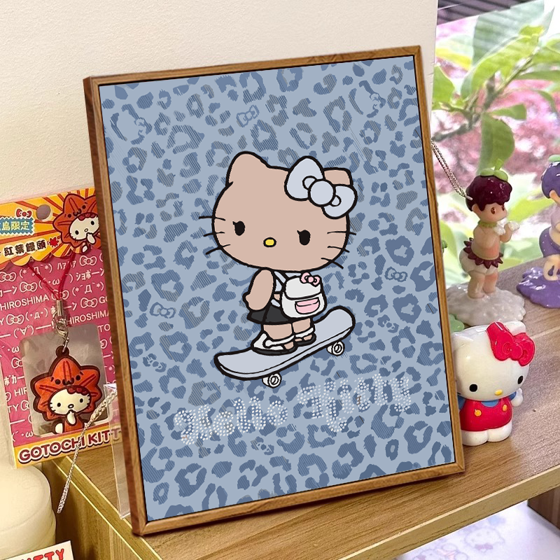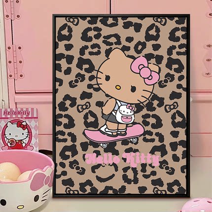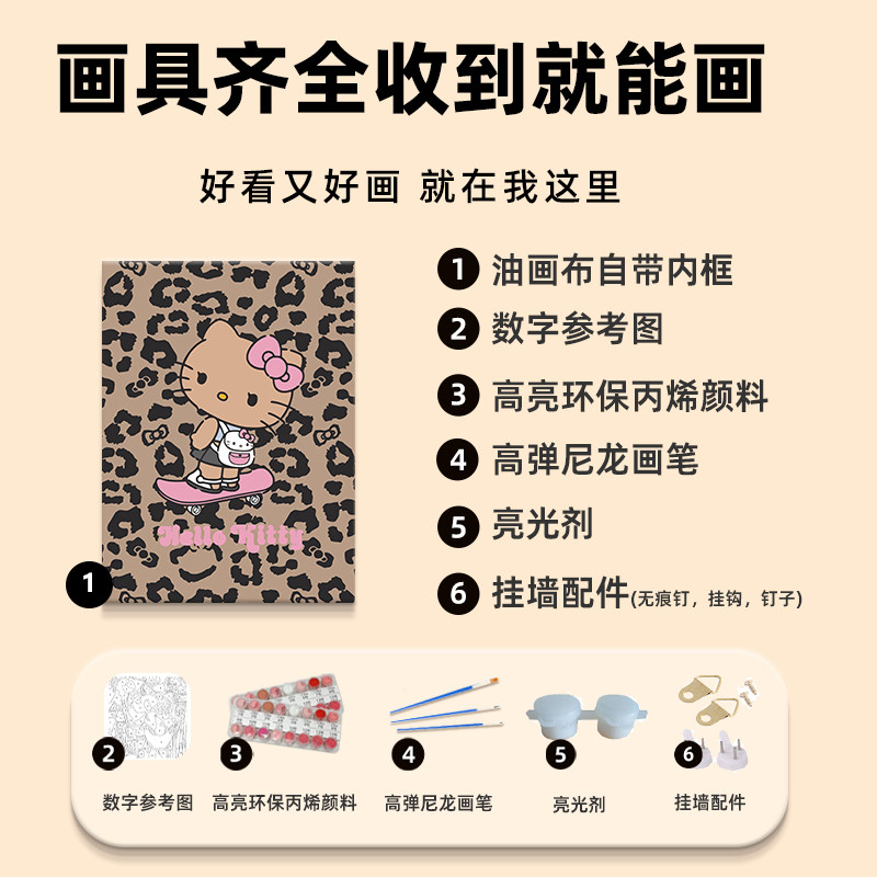 黑皮HelloKitty数字油画diy填充色手工绘豹纹凯蒂猫丙烯画装饰画