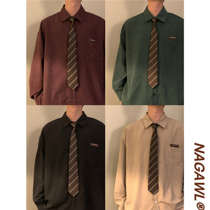 NAGAWL2025春夏新款宽松美式复古长袖衬衫男纯色百搭打底衫高级感