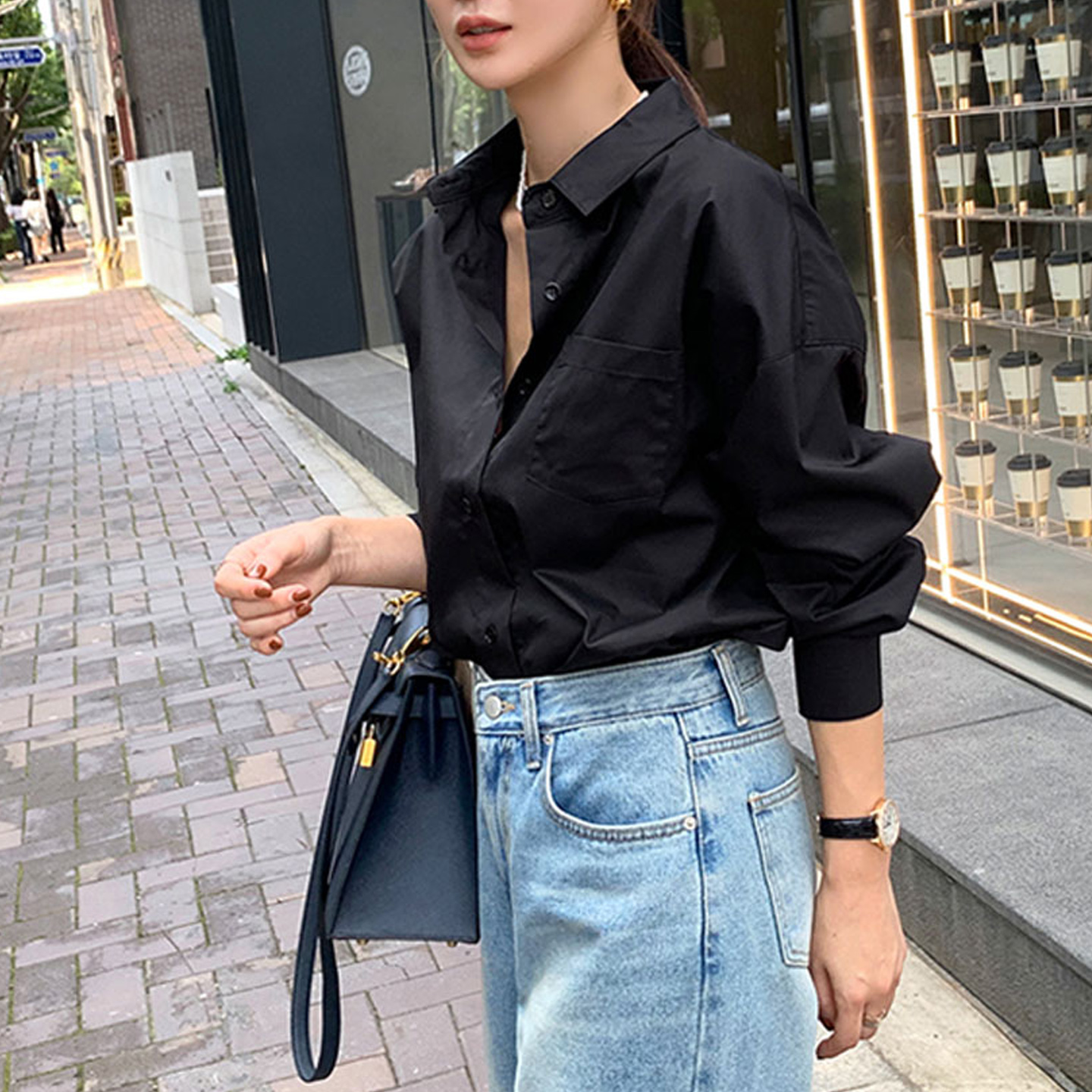 衬衫女长袖高级白衬衣宽松打底百搭叠穿设计感休闲100%棉春秋上衣