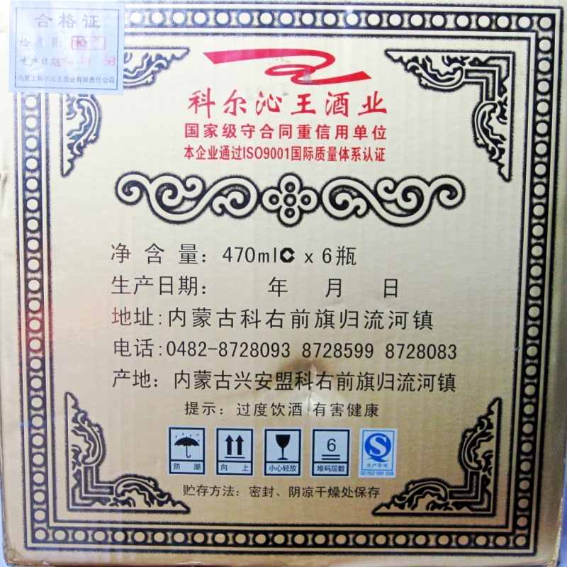 整箱包邮 科尔沁王酒470ml*6瓶/箱 古坛42度53度归流河酒乌兰浩特