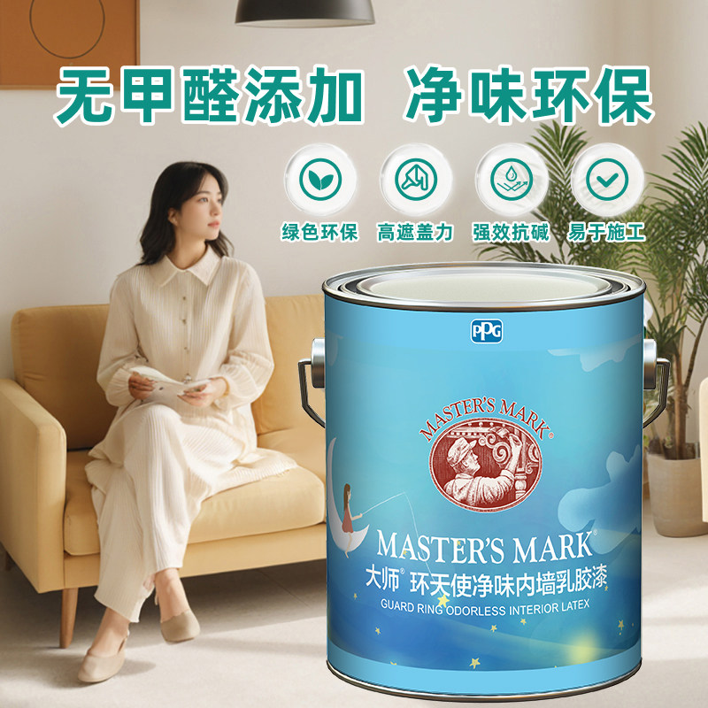 PPG大师漆环天使内墙乳胶漆室内家用自刷涂料墙面漆白色环保油漆