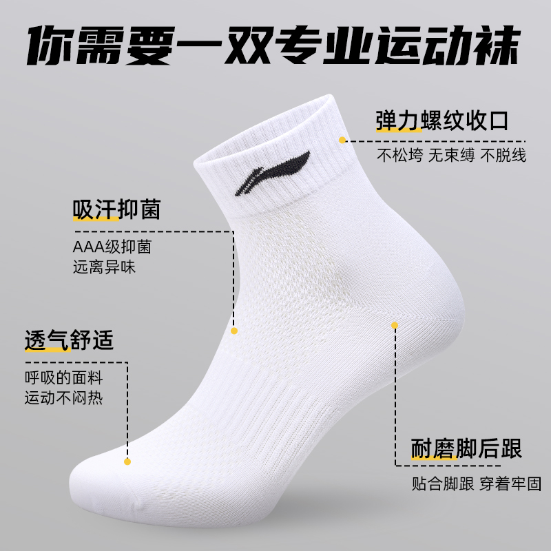 李宁运动袜子男吸汗透气防嗅抗菌篮球羽毛球女中筒棉袜跑步袜正品