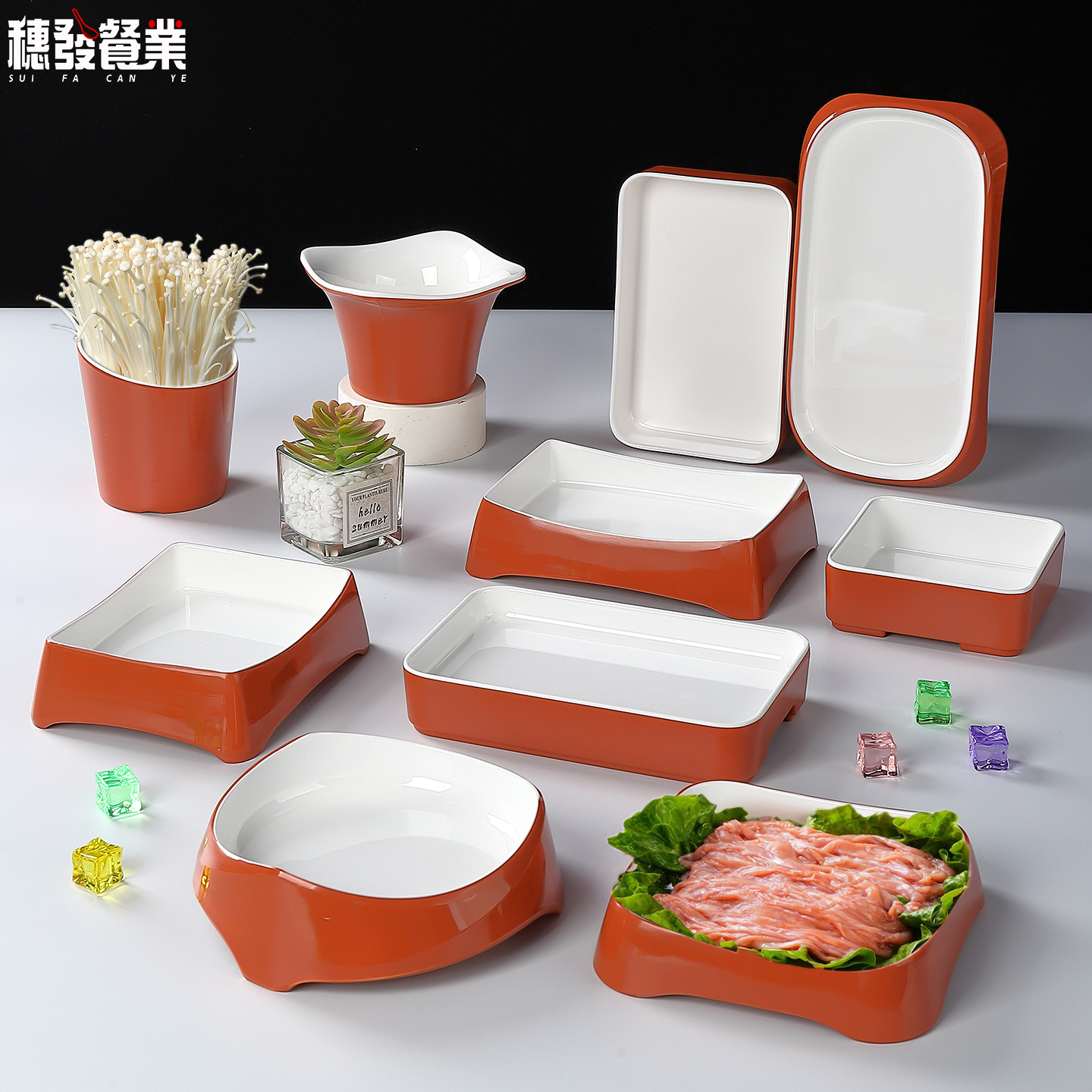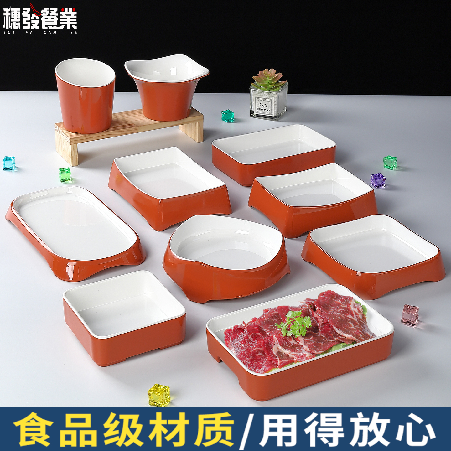 A8密胺盘子火锅店配菜盘餐具商用仿瓷长方形盘自助餐专用烤肉盘子
