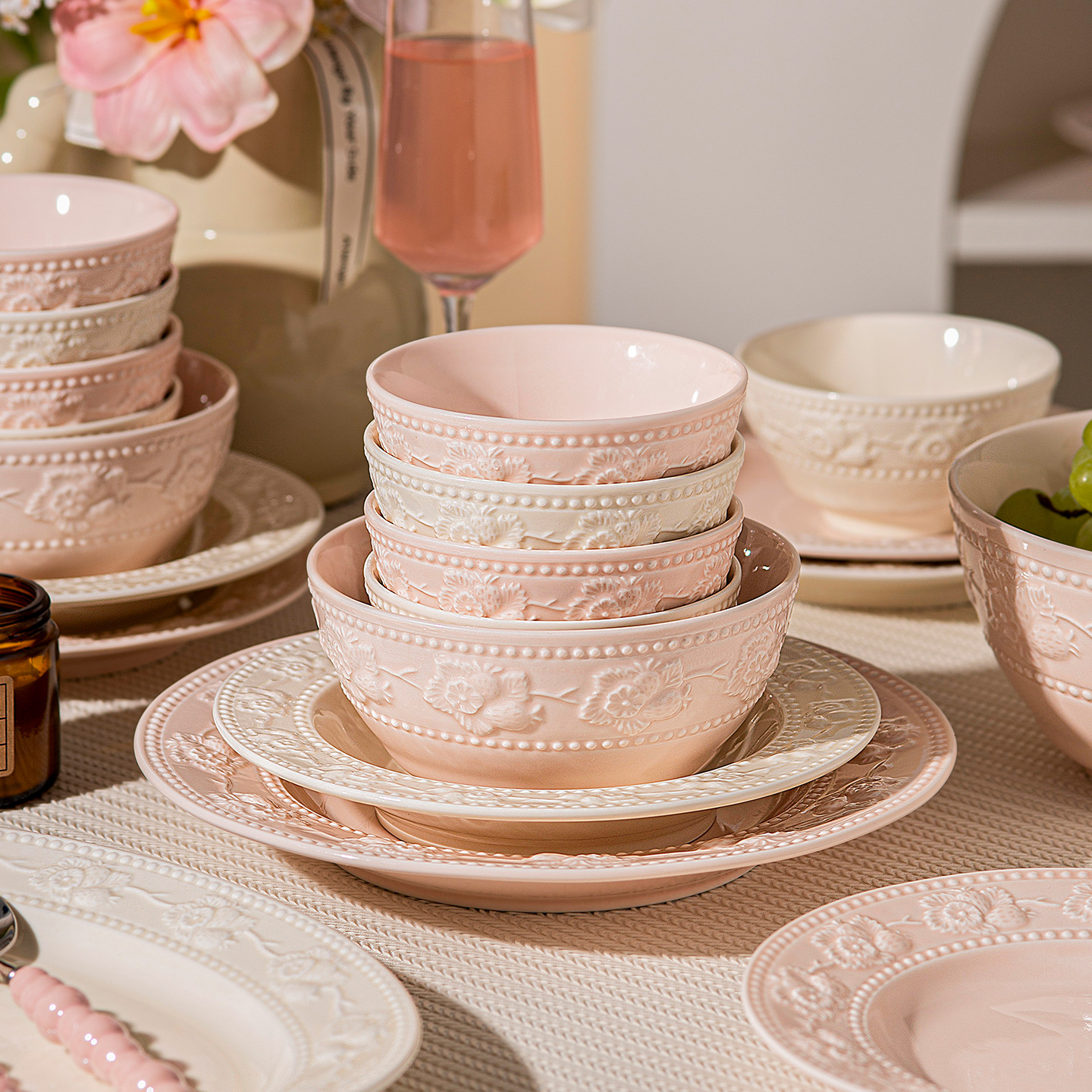 碗碟套装家用2025新款釉下彩高颜值奶油风陶瓷餐具碗盘碗筷盘子