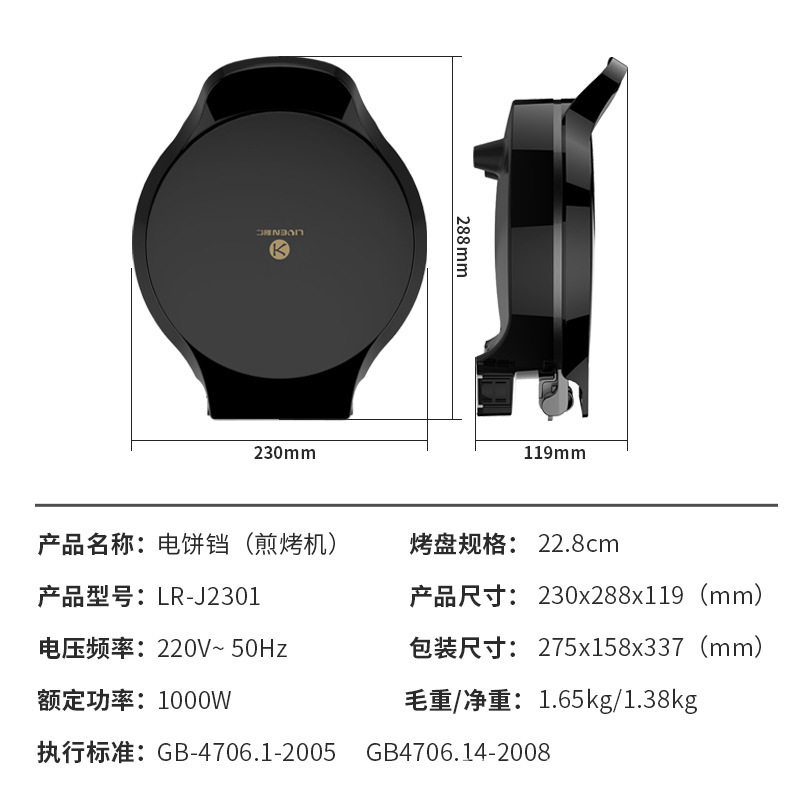 利仁电饼铛铛家用双面加热煎烤机牛排机早餐机烙饼锅小型LR-J2301