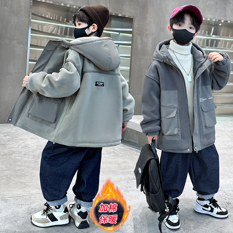 男童夹棉外套秋冬装2025新款中大童加厚上衣儿童奥粒绒帅气棉衣潮