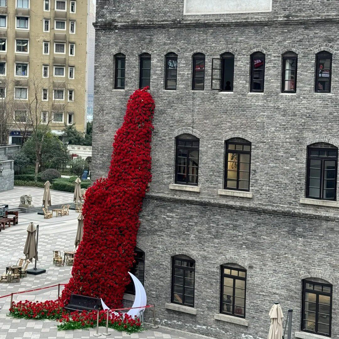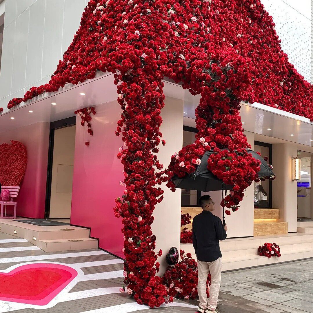 玫瑰瀑布冰川花墙仿真假花美陈商场打卡拐角墙角布置网红装饰场景