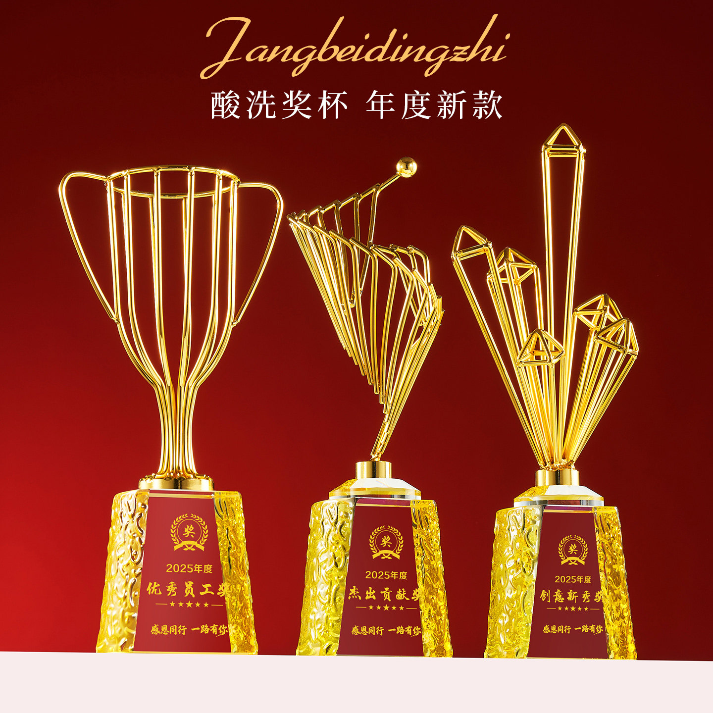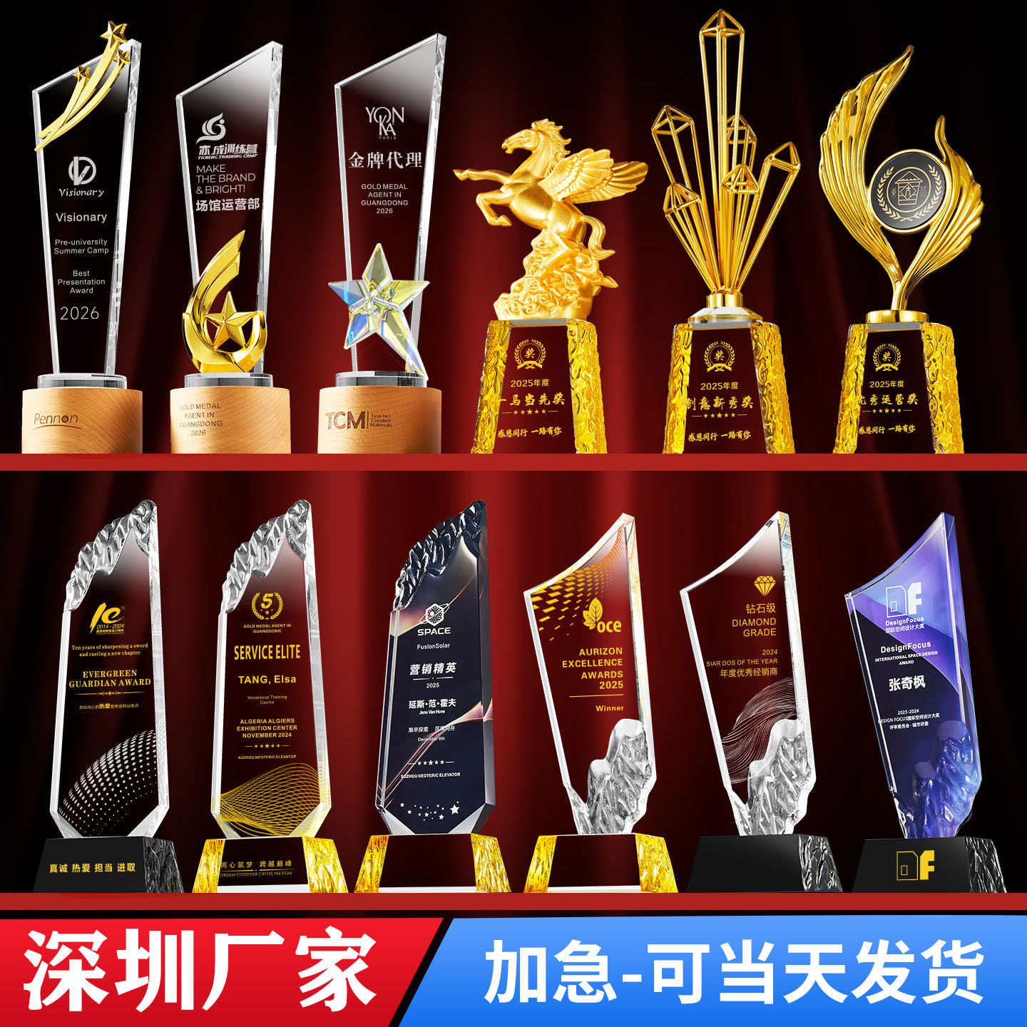 深圳厂家水晶奖杯定制定做创意优秀员工荣誉学校比赛订制金属奖牌