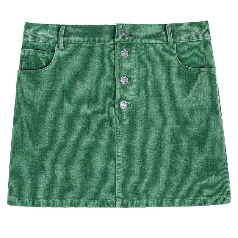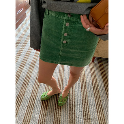 落落狷介 半身裙秋冬款2025年新款灯芯绒半身女绿色小个子包臀裙