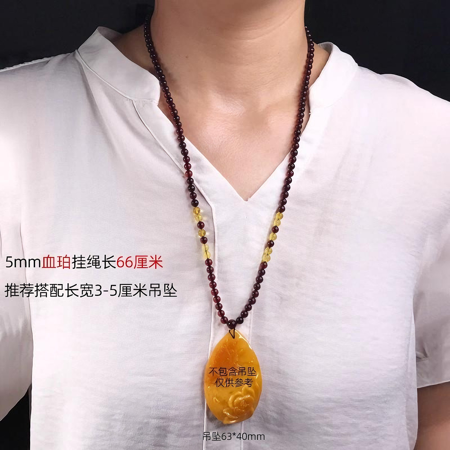 思华年天然琥珀血珀/金珀/蜜蜡/彩虹渐变50cm项链挂绳66cm毛衣链