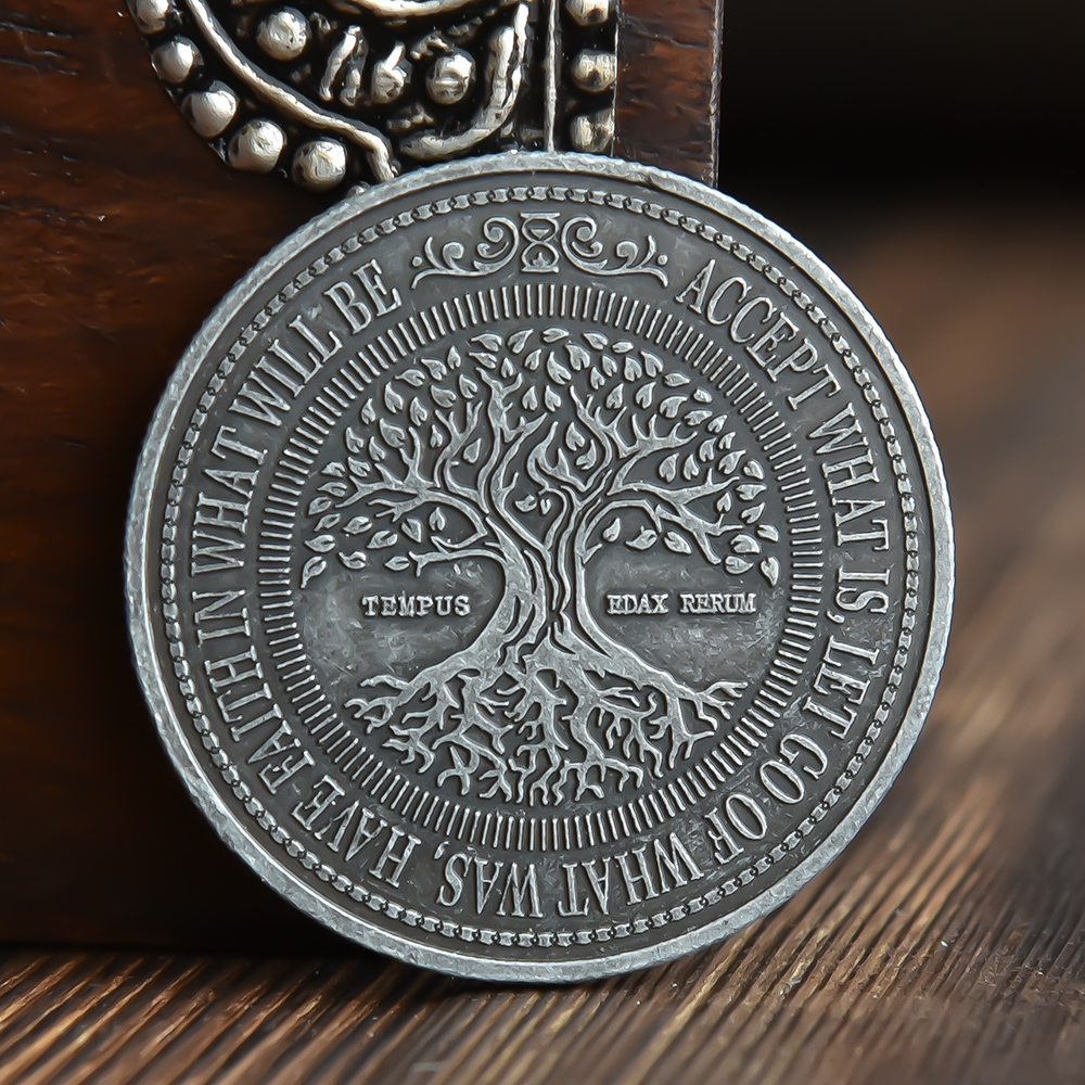 生命之树做旧浮雕铜银收藏纪念币复古硬币礼物品创意小玩意工业风