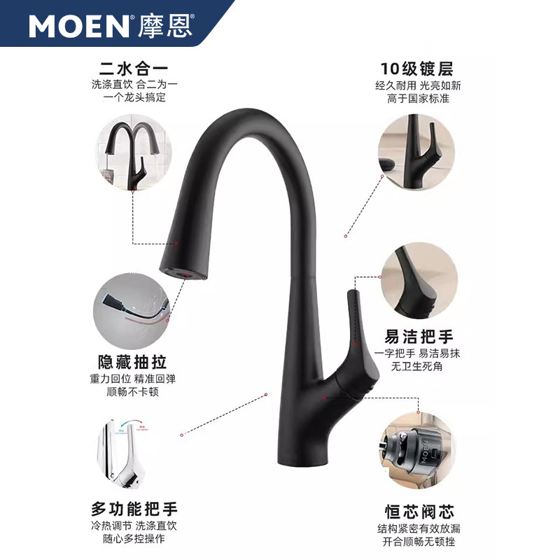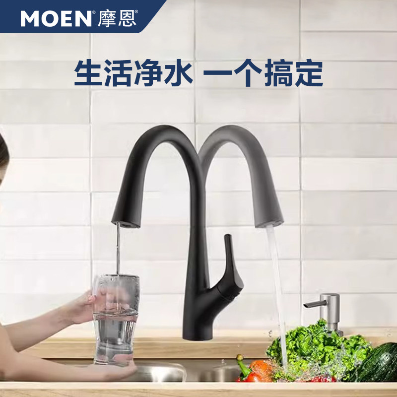 摩恩净水洗涤2合1直饮厨房龙头冷热水龙头抽拉可旋转家用GN69700