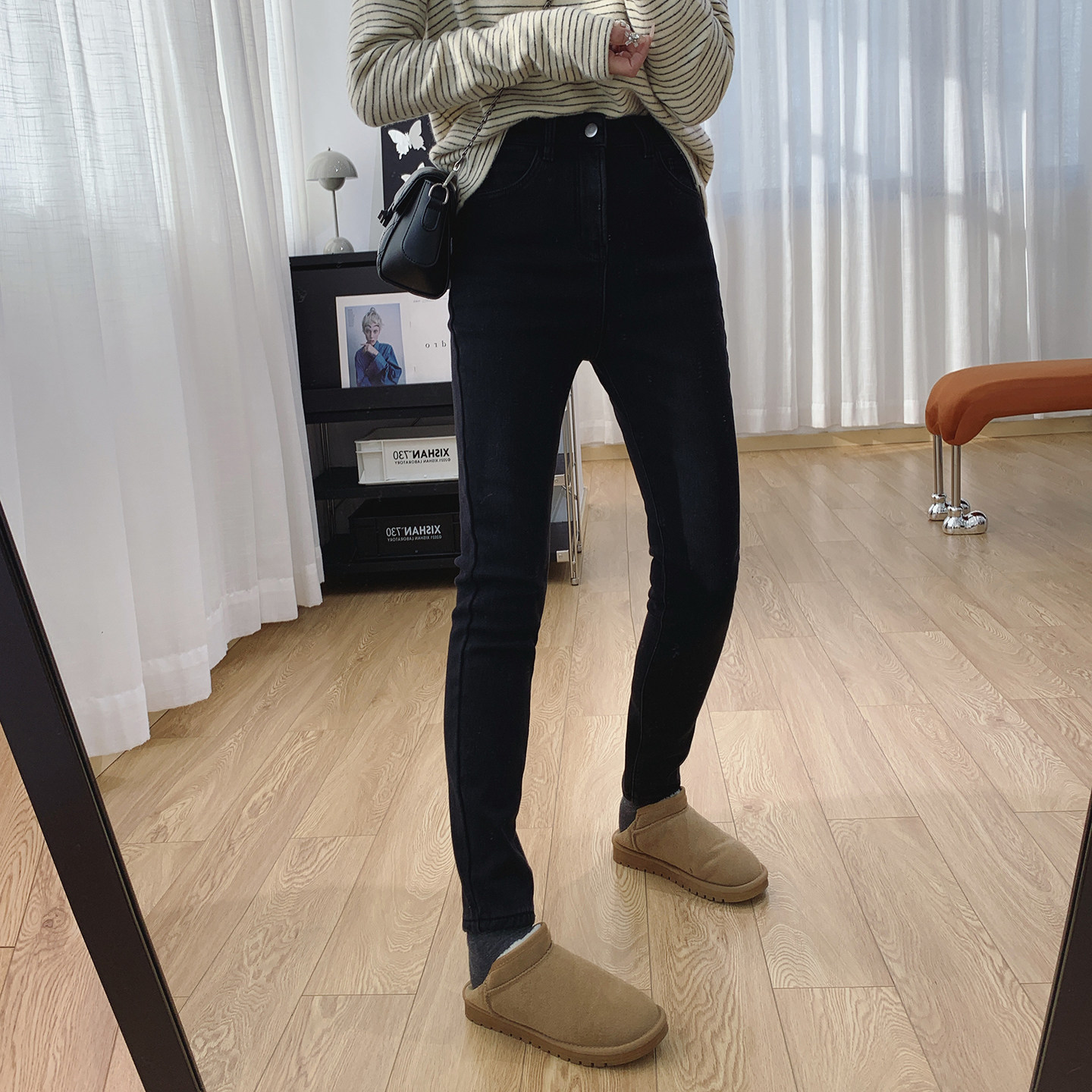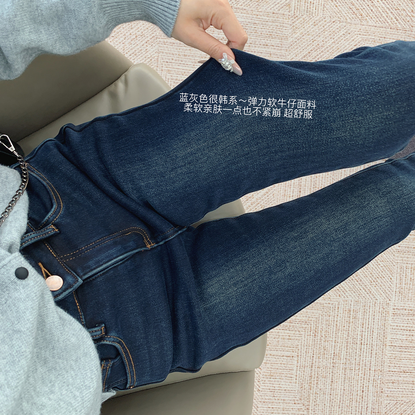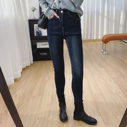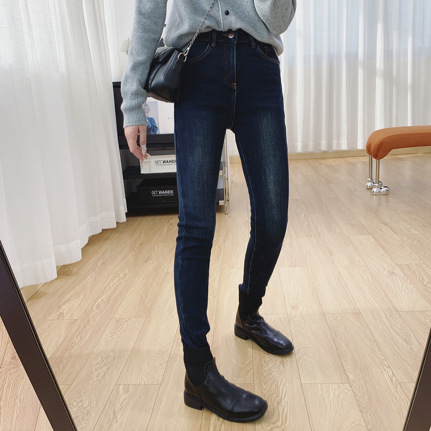 高腰显瘦加厚加绒修身小脚牛仔裤