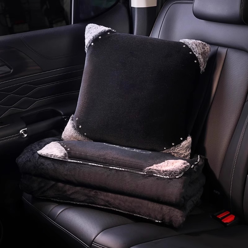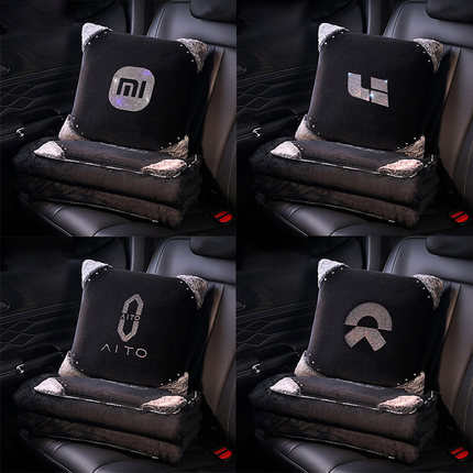 镶钻汽车抱枕被两用四季毯子空调被水晶绒适用理想问界小米靠枕被