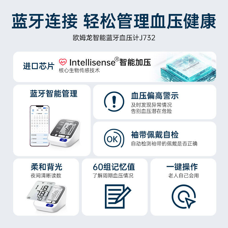 欧姆龙J732血压计精准家用上臂式高血压测量仪蓝牙电子测血压仪器