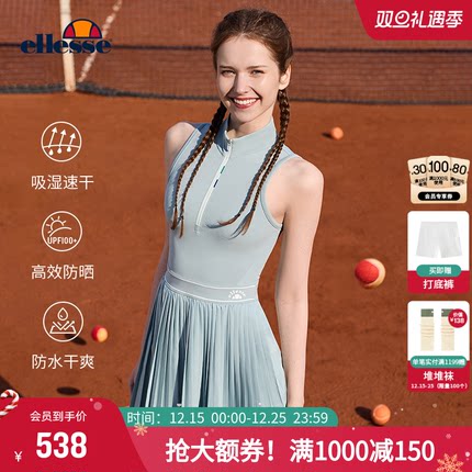 ellesse小贝壳防晒百褶网球裙秋吸湿速干运动无袖连衣裙背心短裙