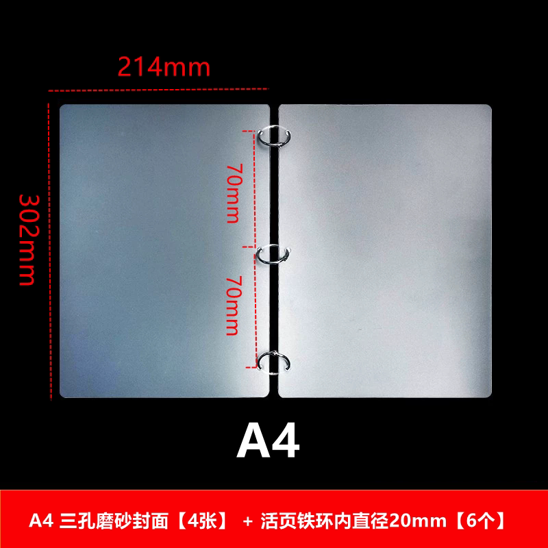 三孔孔距70mmA4文件夹封面透明磨砂封皮简约3孔7厘米活页夹扣环
