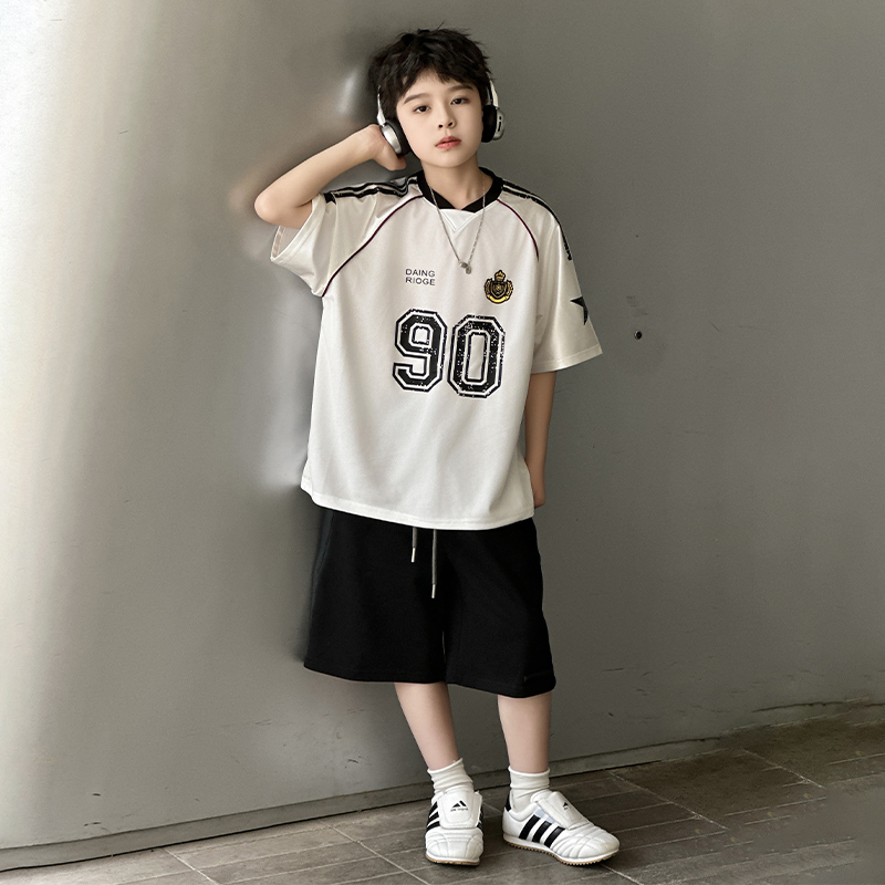 男童夏季酷帅短袖套装2025新款男孩时髦速干运动服青少年篮球服潮