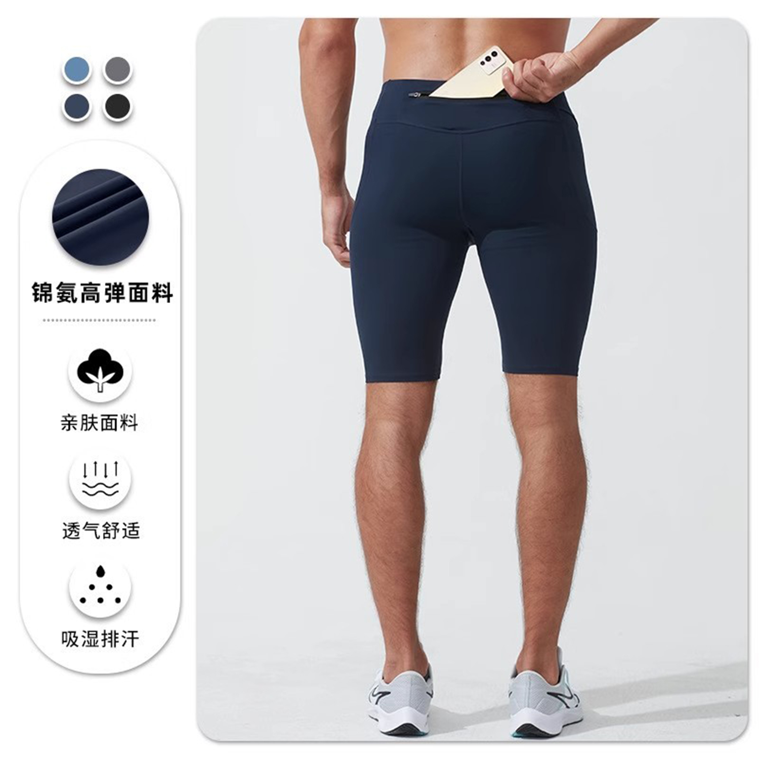 专业跑步压缩短裤男速干运动高弹紧身裤马拉松训练五分裤可放手机