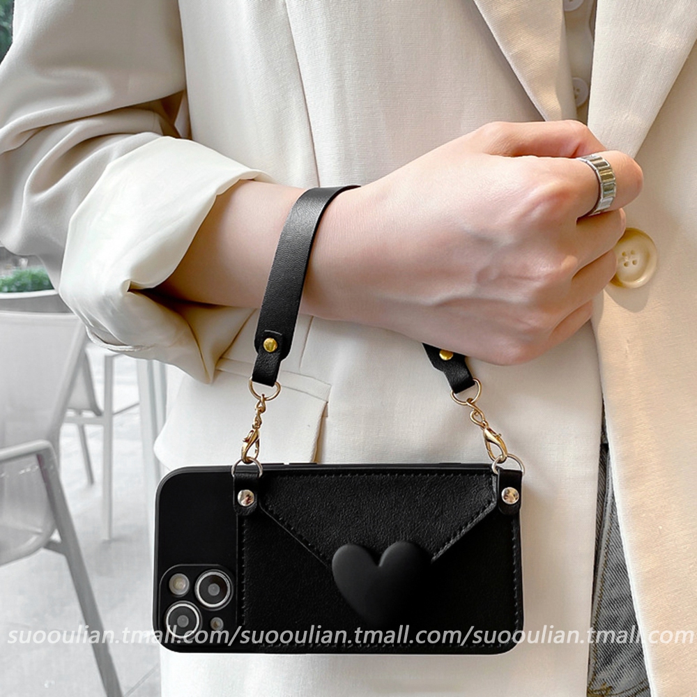 简约黑色立体爱心卡包适用小米13pro手机壳红米k60/k50/k40/30潮12/11/10s红米note11pro防摔软note10/9/8女