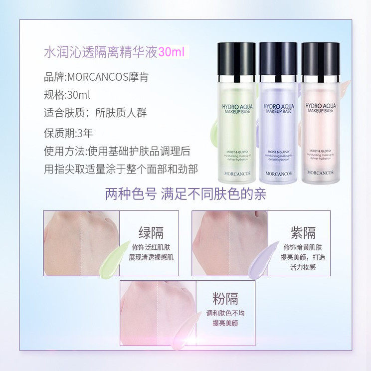 MORCANCOS摩肯彩妆韩国进口水润沁肤隔离霜提亮妆前打底美肤正品