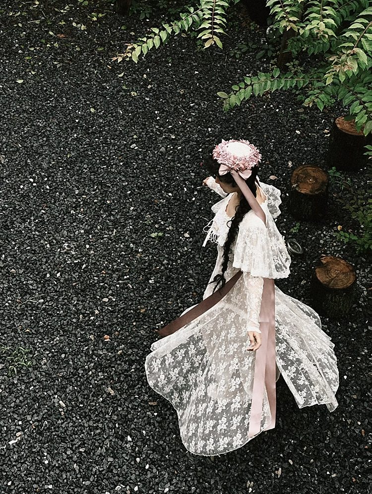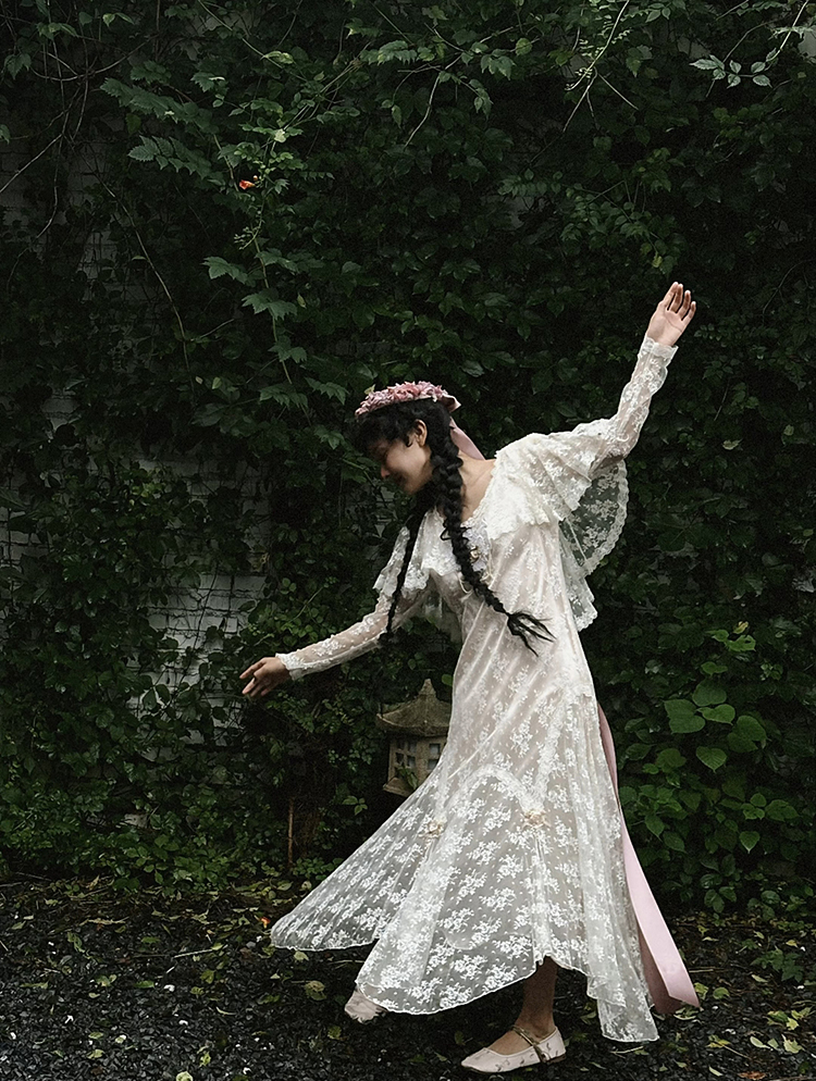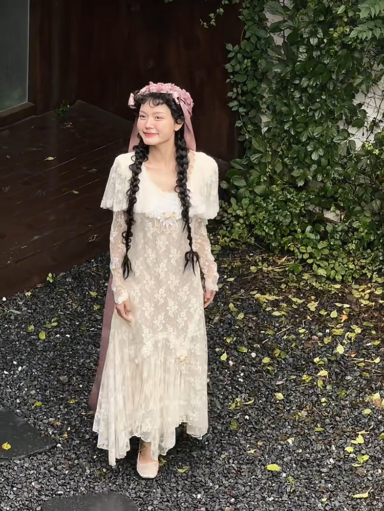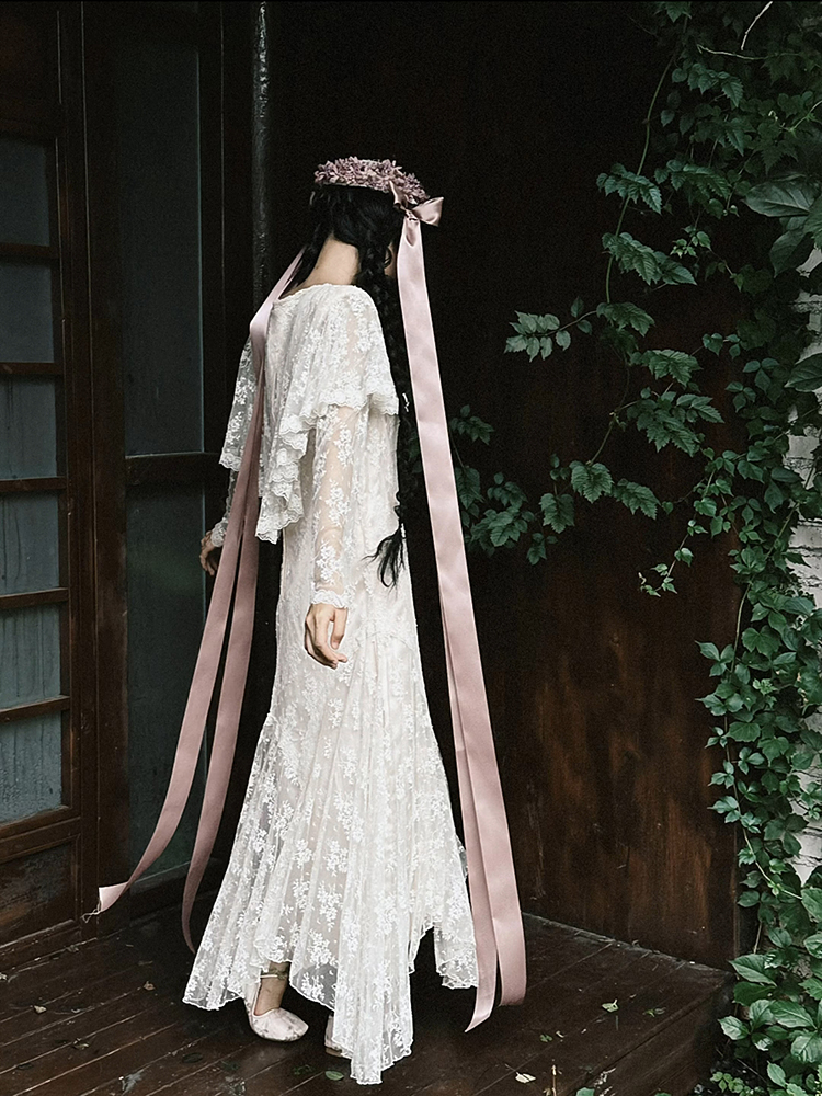 法式复古轻婚纱新娘2024新款结婚长袖森系蕾丝写真旅拍度假礼服裙