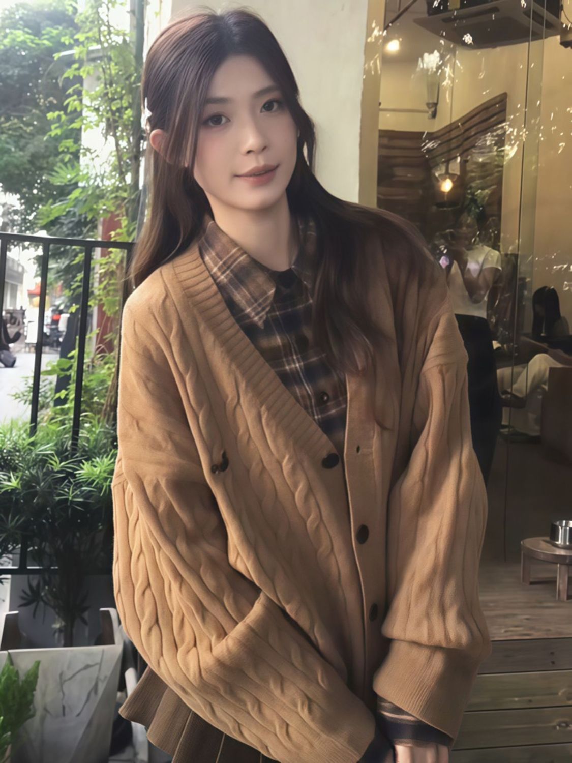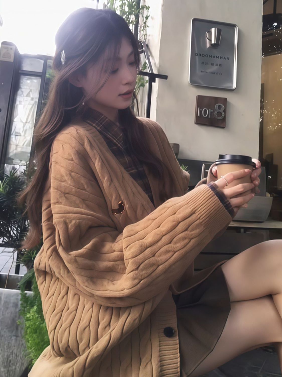 咖色复古v领针织开衫女2025秋冬新款美式慵懒风休闲百搭毛衣外套